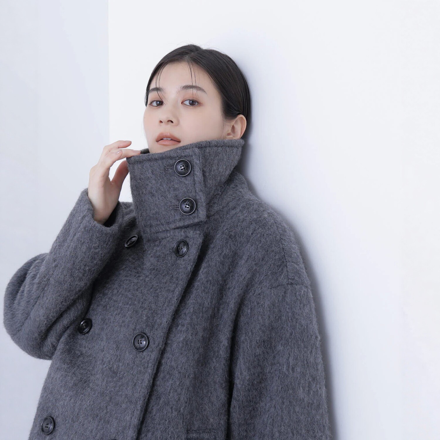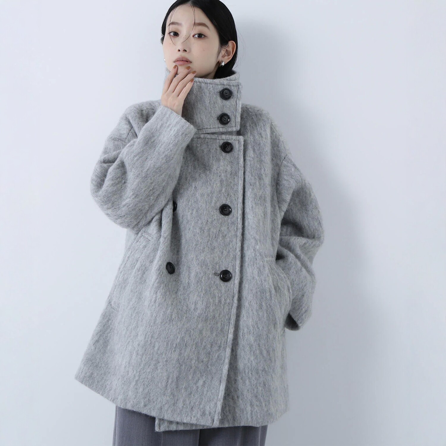 0ggi杂志款 N家 高智精英分子感 舒适高立领绒感羊毛呢大衣外套