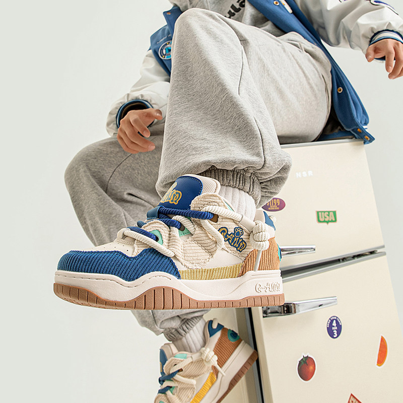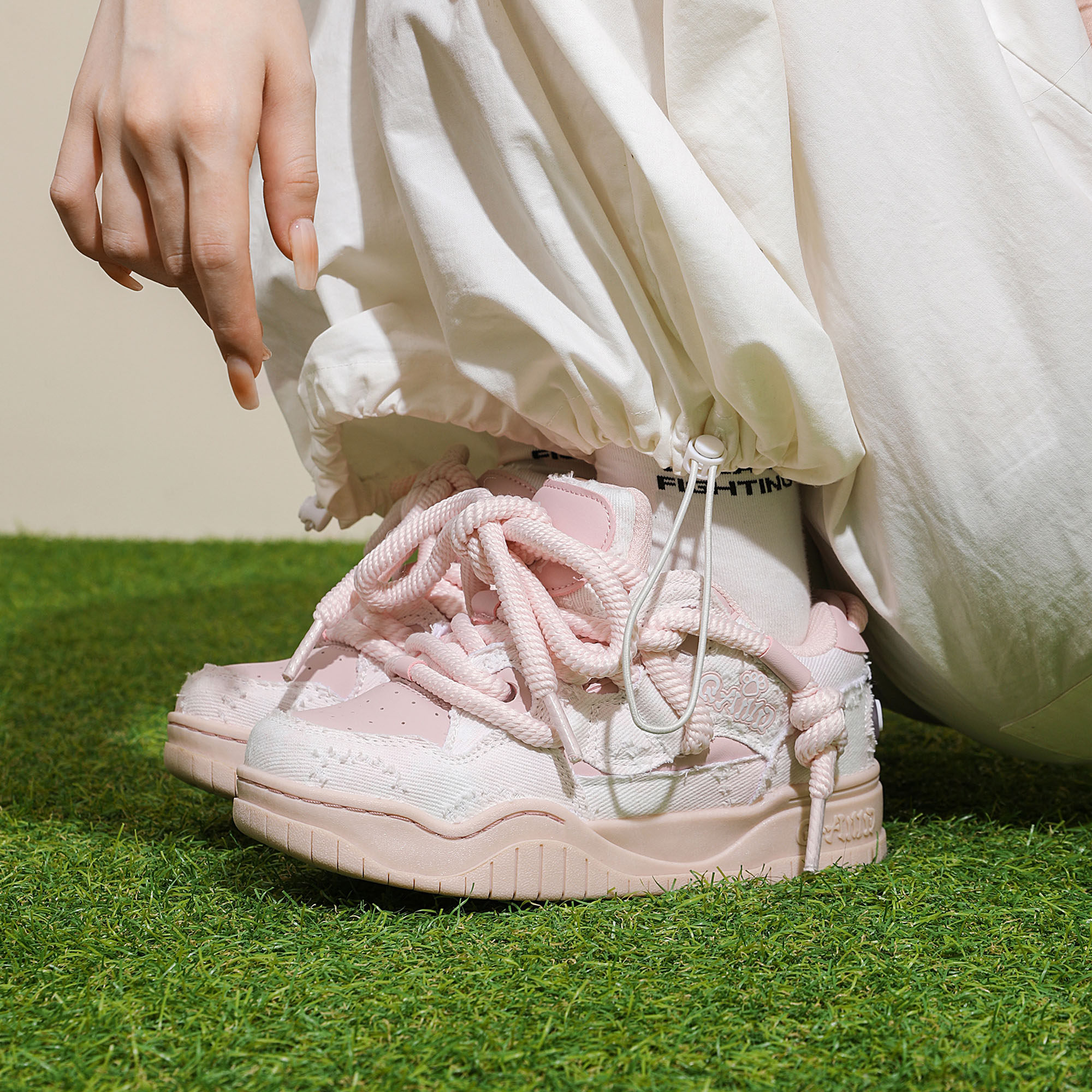奇安达休闲鞋女厚底鞋子秋季增高面包鞋黑色松糕鞋小众复古板鞋男
