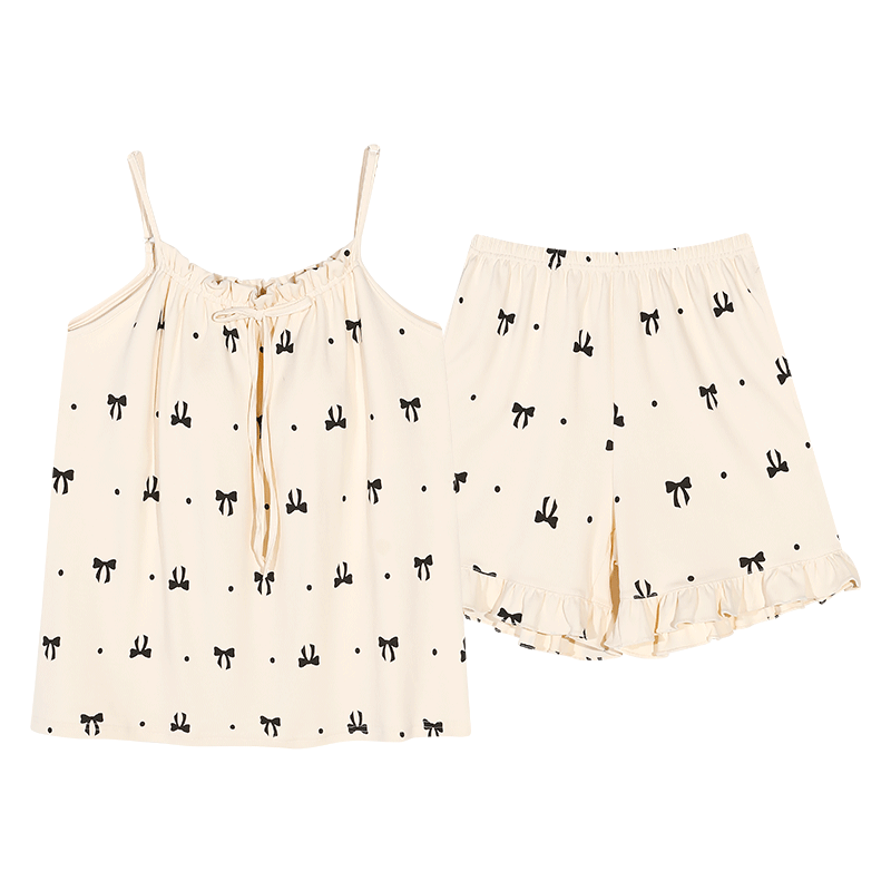 猫人全棉带胸垫女士睡衣2025夏新款吊带无袖甜美可外穿家居服套装