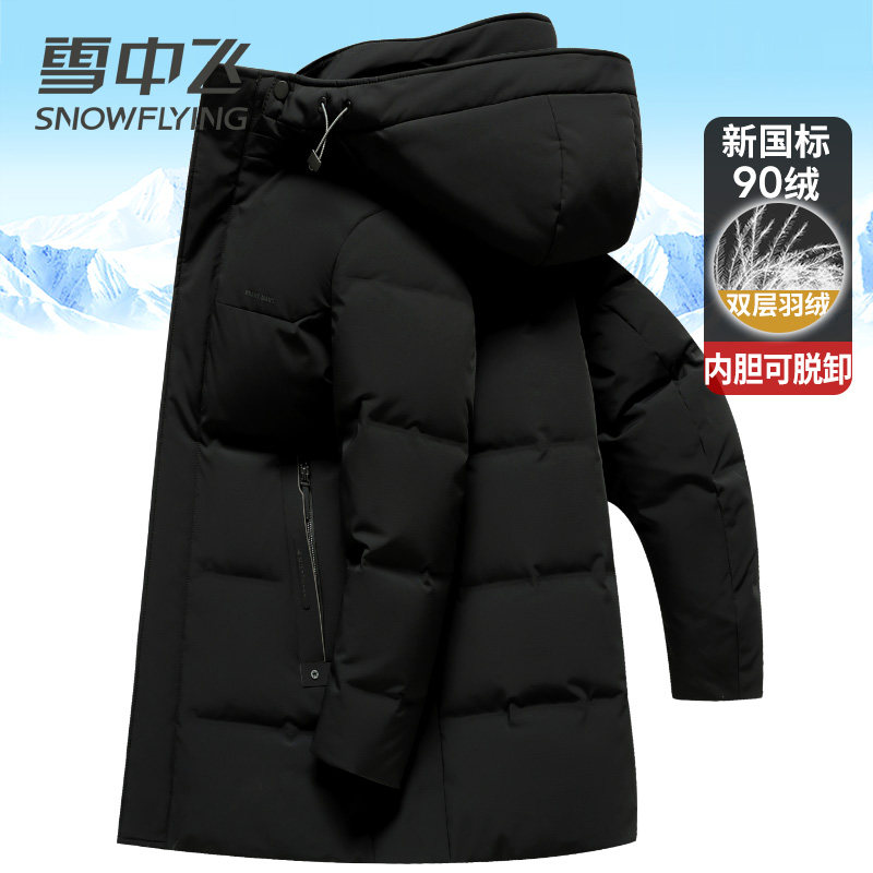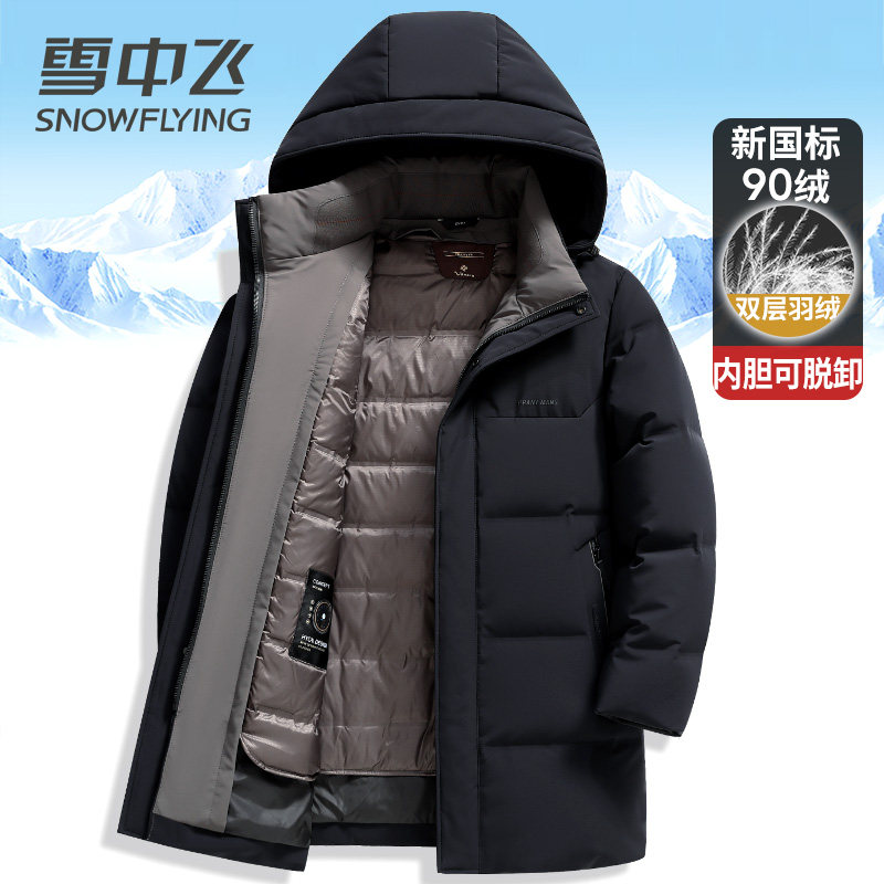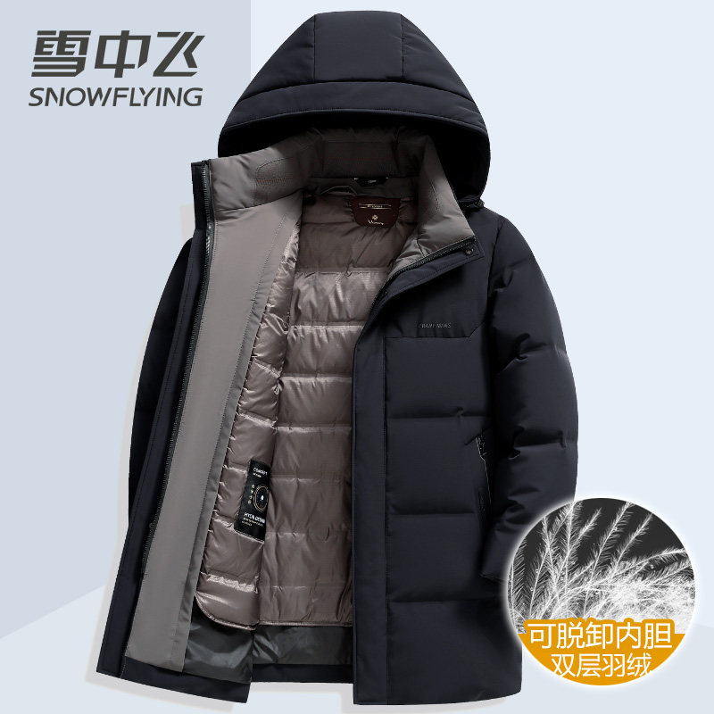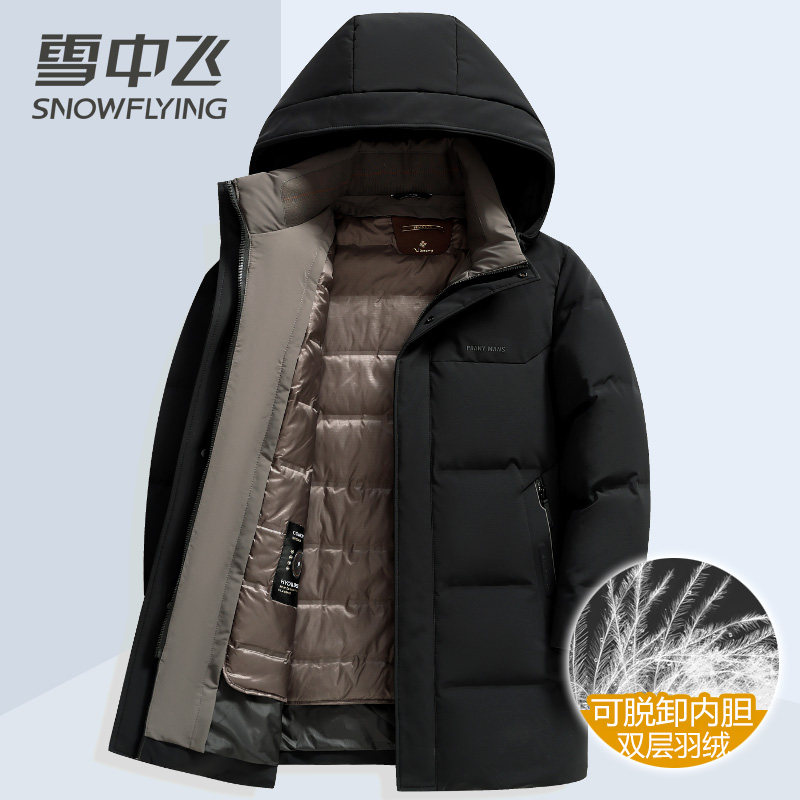雪中飞中老年爸爸装男士羽绒服中长款加厚双充可脱卸内胆冬季外套