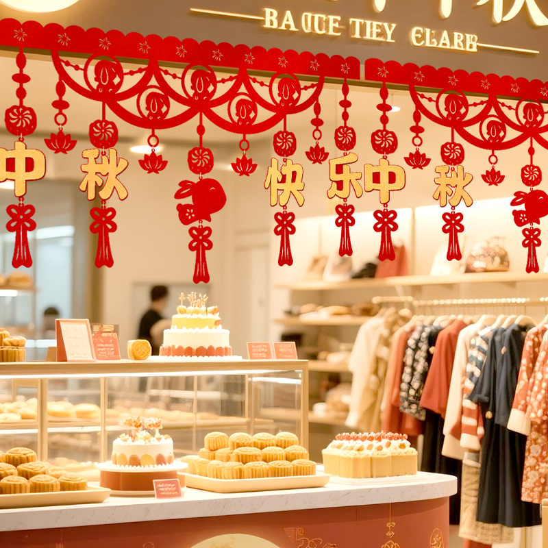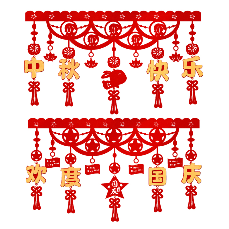 国庆节门帘挂饰门楣拉花商场珠宝店金店橱窗拉花中秋节幼儿园吊饰