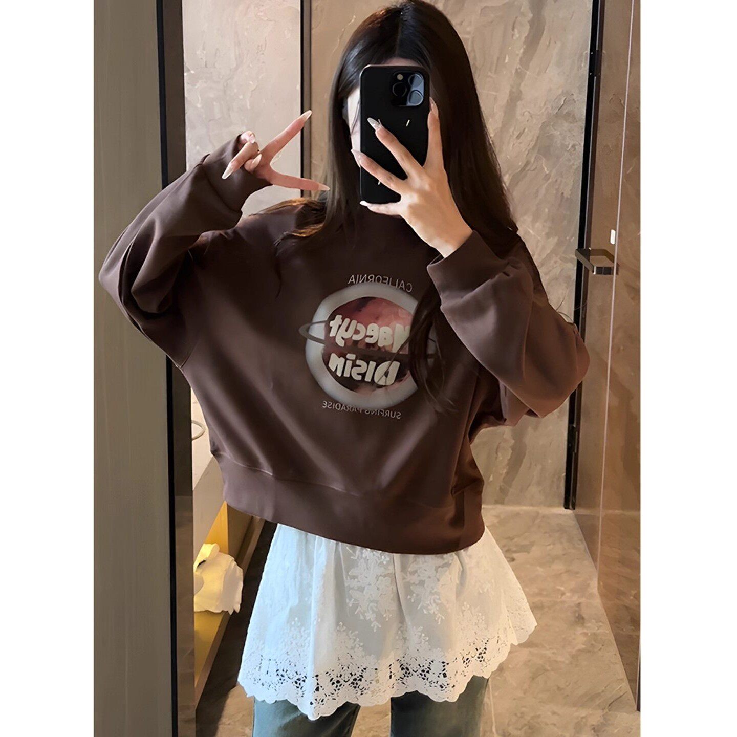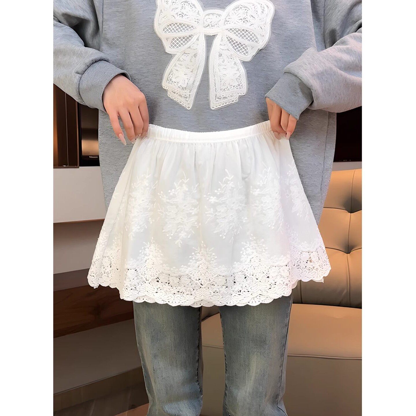 韩国蕾丝屁帘女2026春夏新款松紧腰镂空下摆纱裙罩围裙遮臀半身裙
