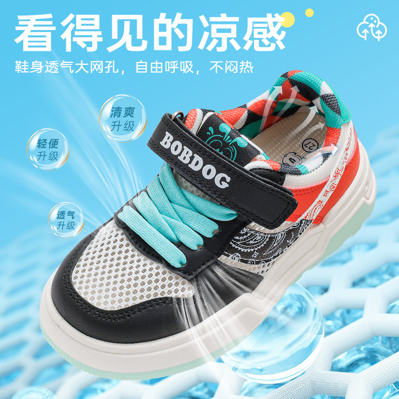 巴布豆童鞋儿童网鞋男童夏鞋2025新款小学生网面透气板鞋女童鞋子