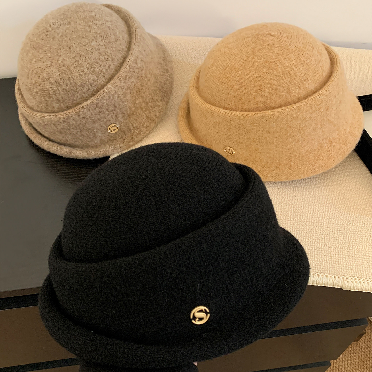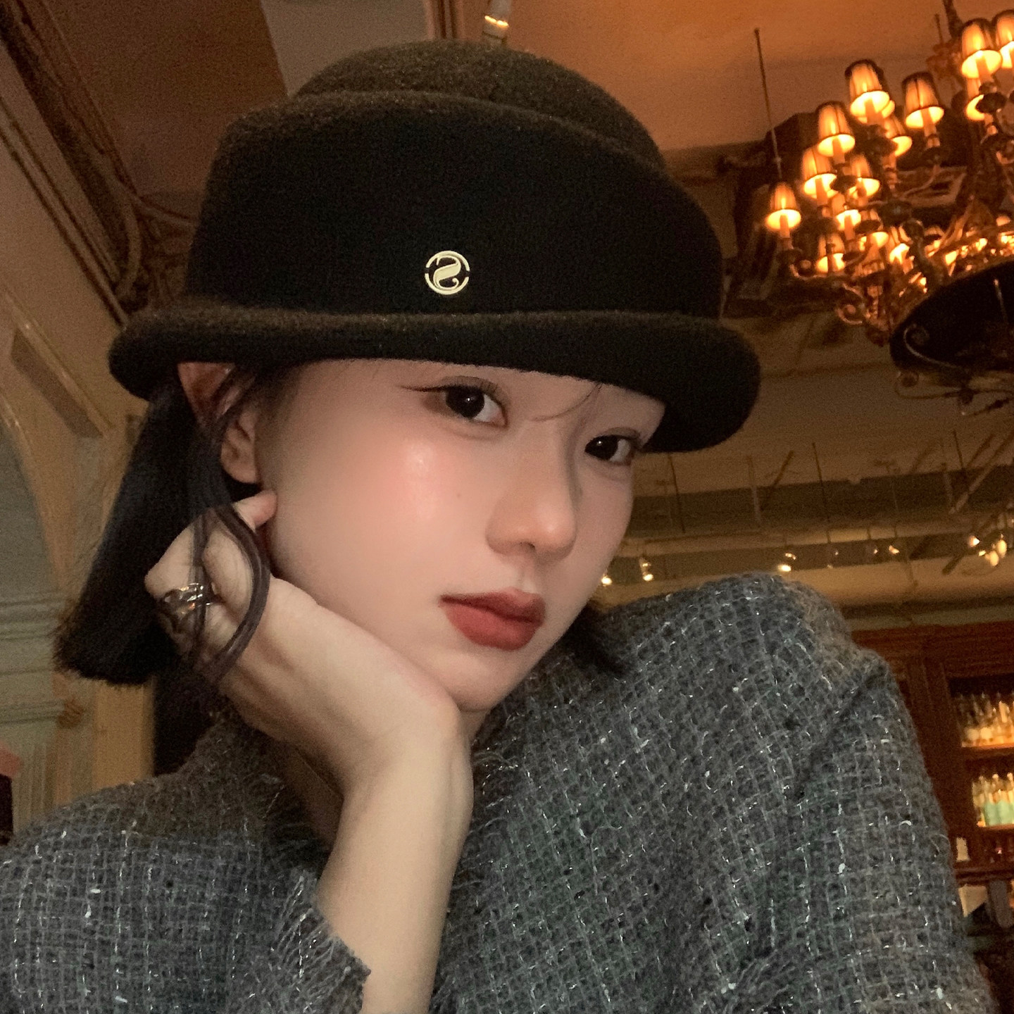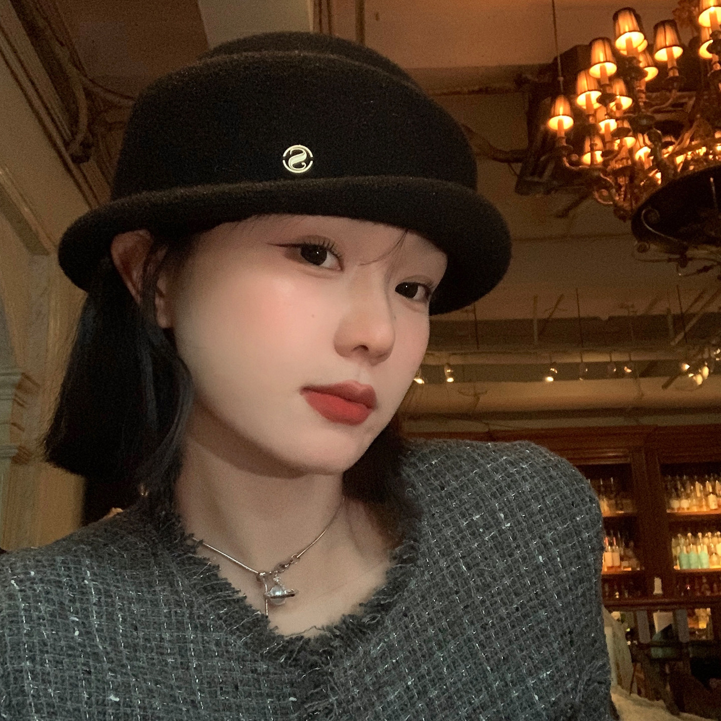 千金风高级感卷边黑色礼帽女秋冬季显脸小气质盆帽大头围渔夫帽子