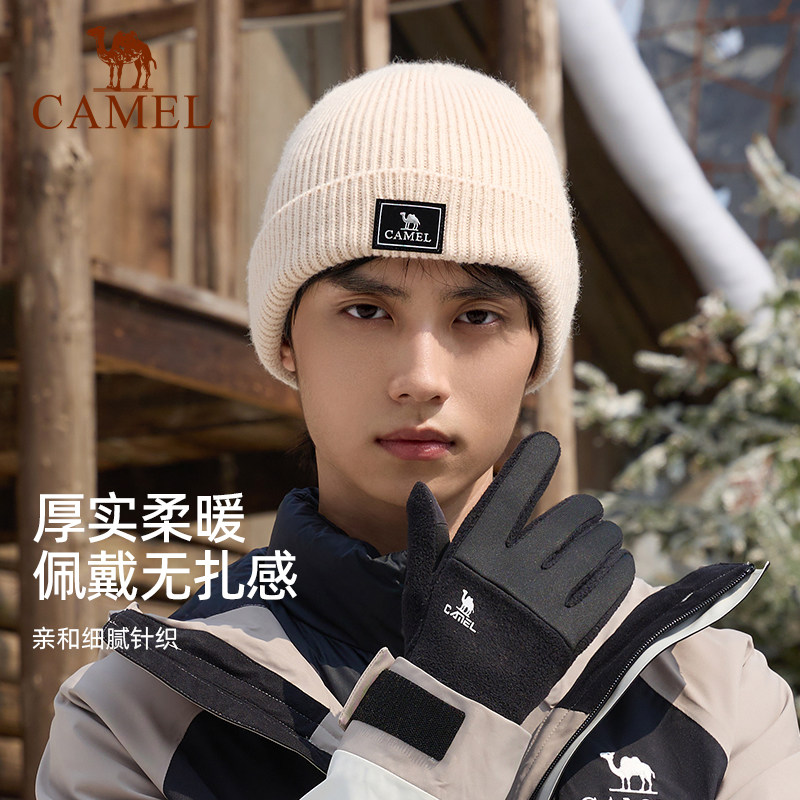 骆驼户外针织毛线帽男女东北防寒保暖冷帽护耳大头围加厚包头帽子
