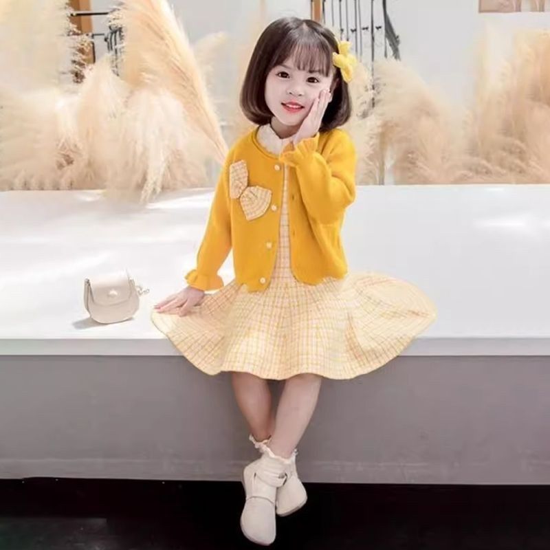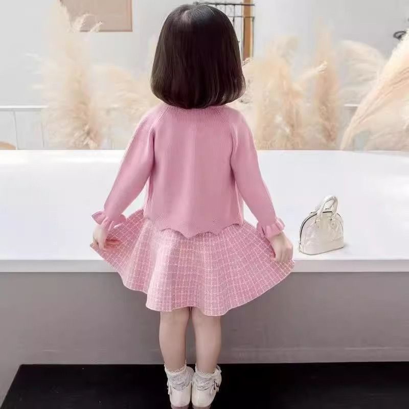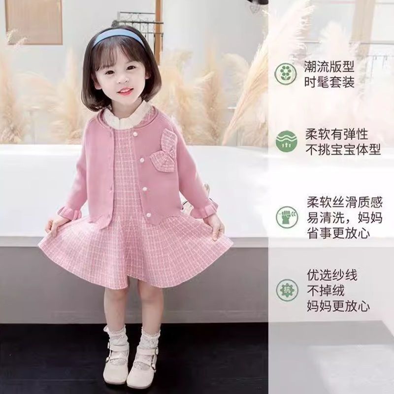 女童套装春秋款2024新款洋气时髦小女孩衣服儿童毛衣开衫外套裙子