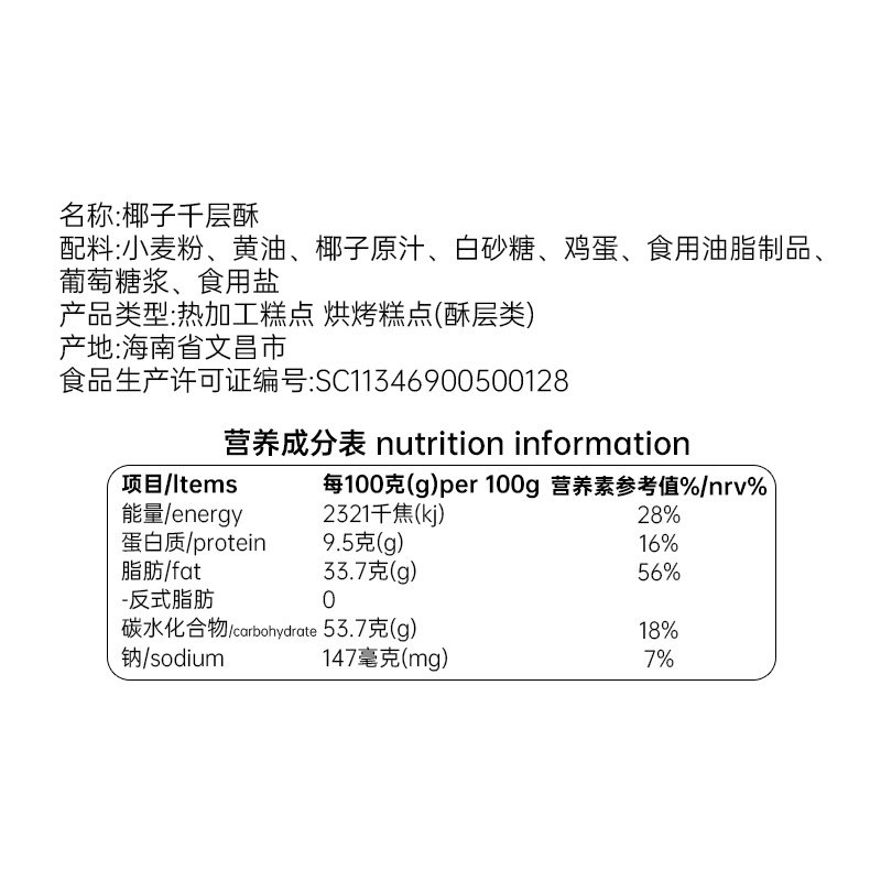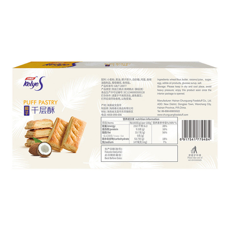 春光食品 休闲零食 椰子千层酥80g*3酥脆饼干零食小吃