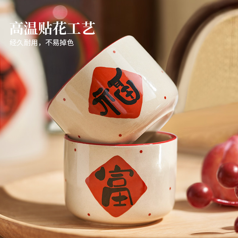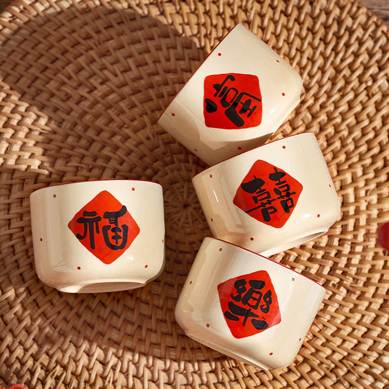 陶瓷小茶杯喝水杯茶碗新年品茗杯