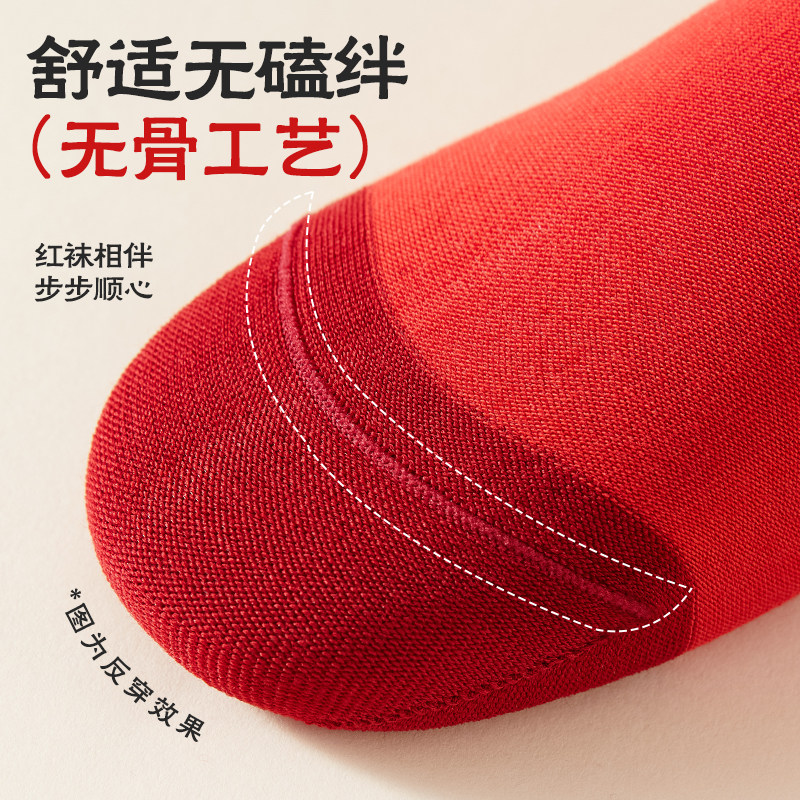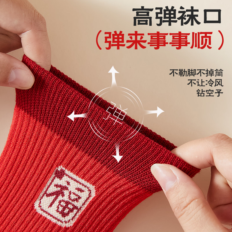恒源祥本命年纯棉无骨抗菌男袜女袜秋冬大红色新年结婚礼物中筒袜