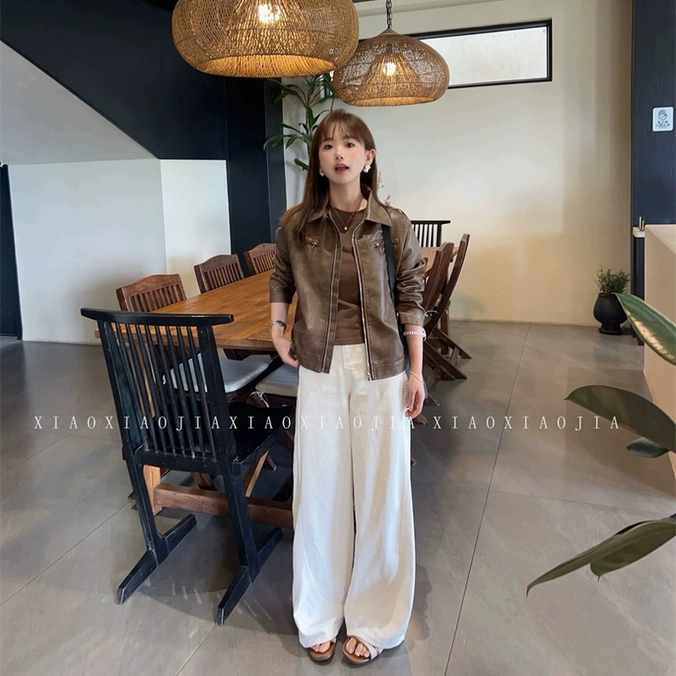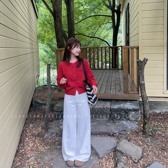 小小家 小个子小码秋新款直筒阔腿白色牛仔裤显高瘦长款大摆裤子