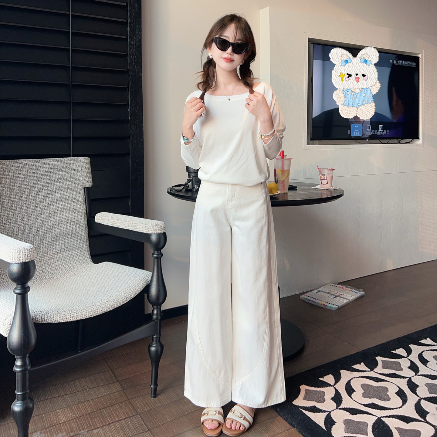 小小家小个子白色牛仔裤