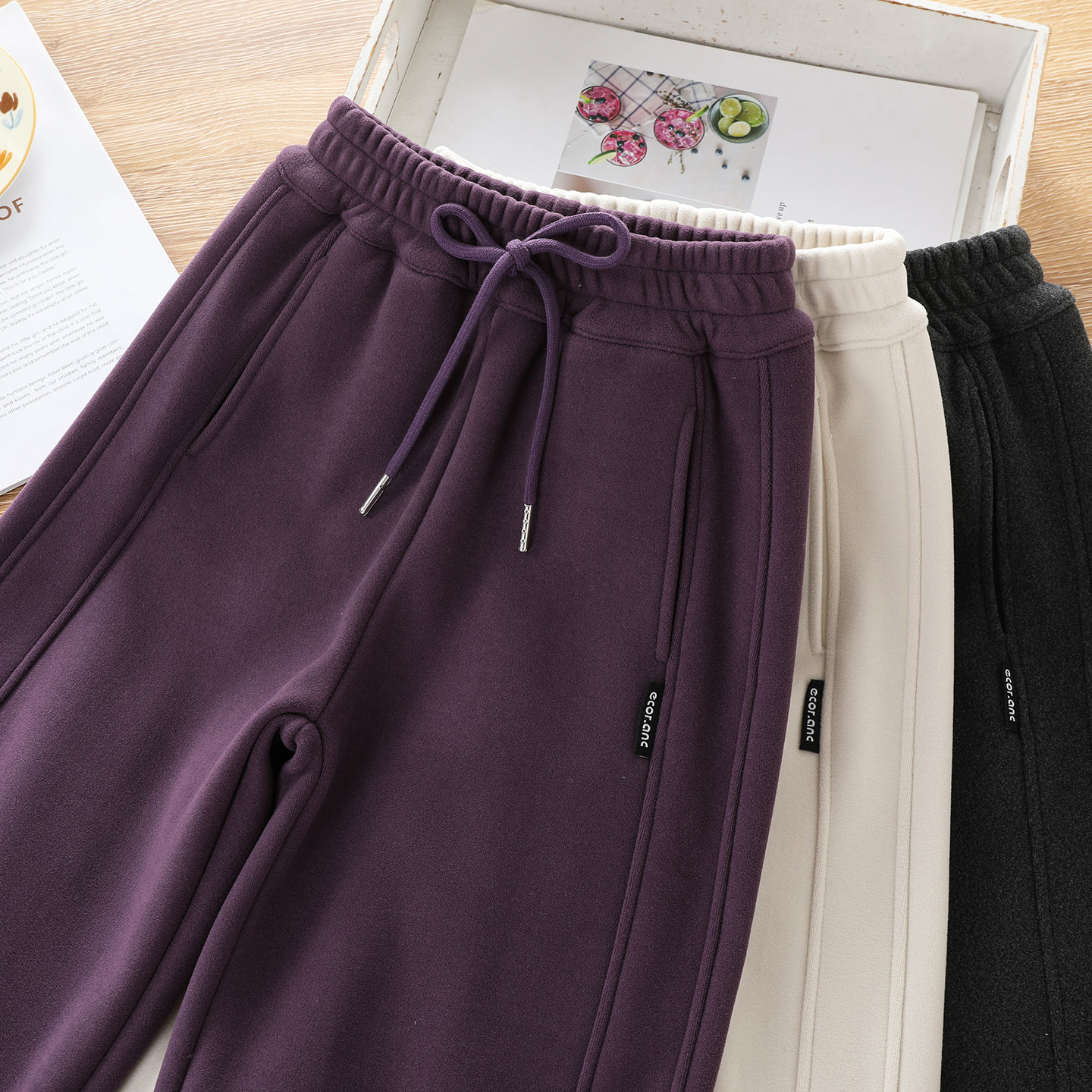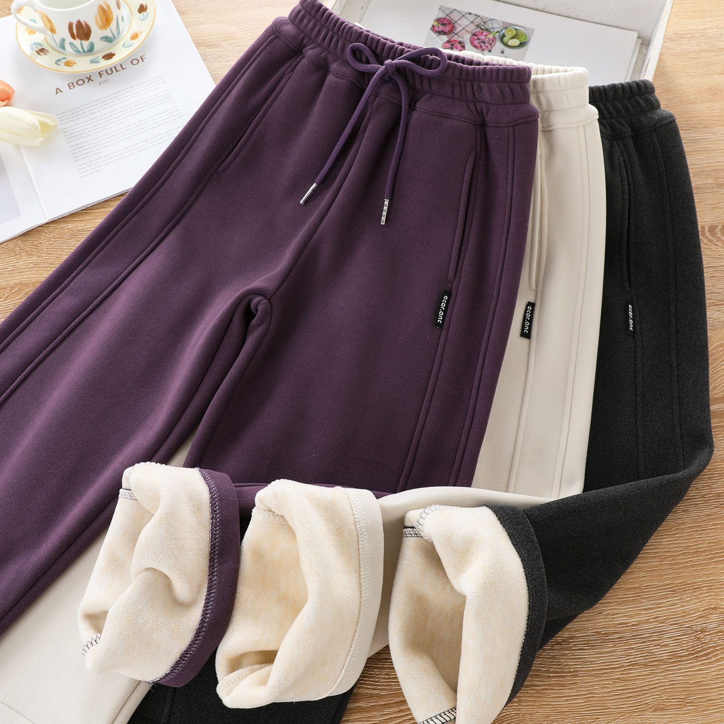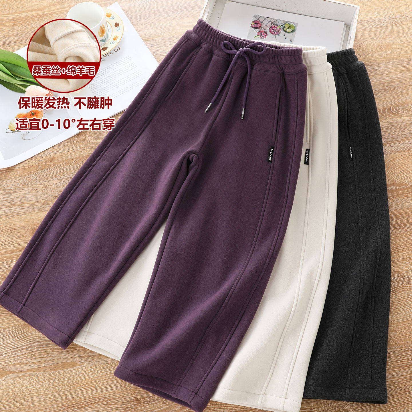 女童糯米绒直筒香蕉裤秋冬中大童加绒休闲裤儿童一体绒加厚弯刀裤