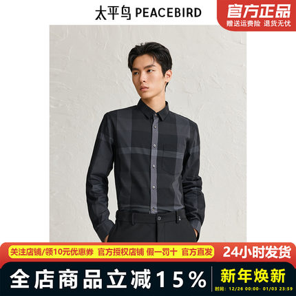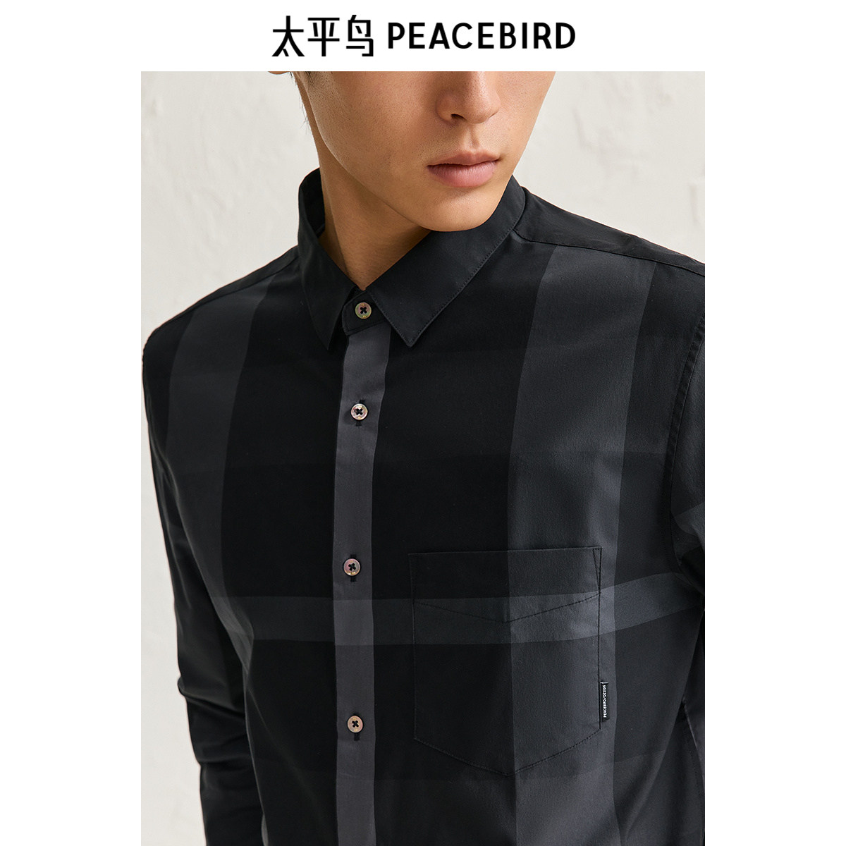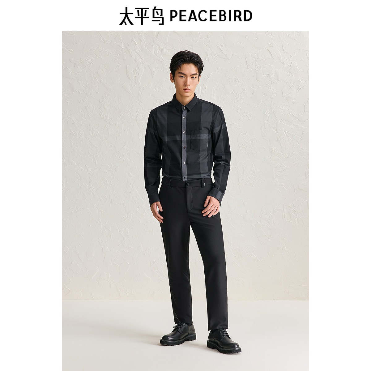 【商场同款】太平鸟男装23年冬季新款格纹衬衣男士衬衫BWCAD4272