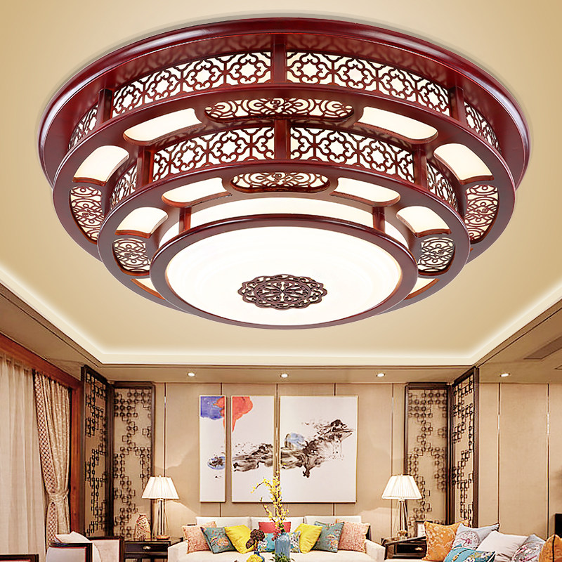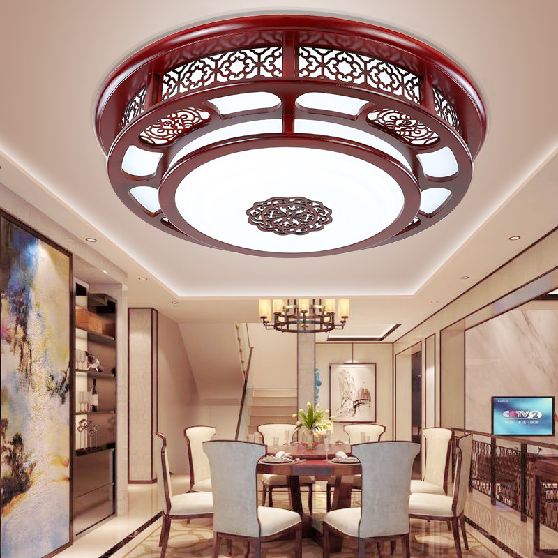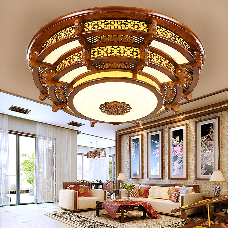 新中式吸顶灯圆形大厅中国风实木办公室大尺寸灯具客厅主灯大灯