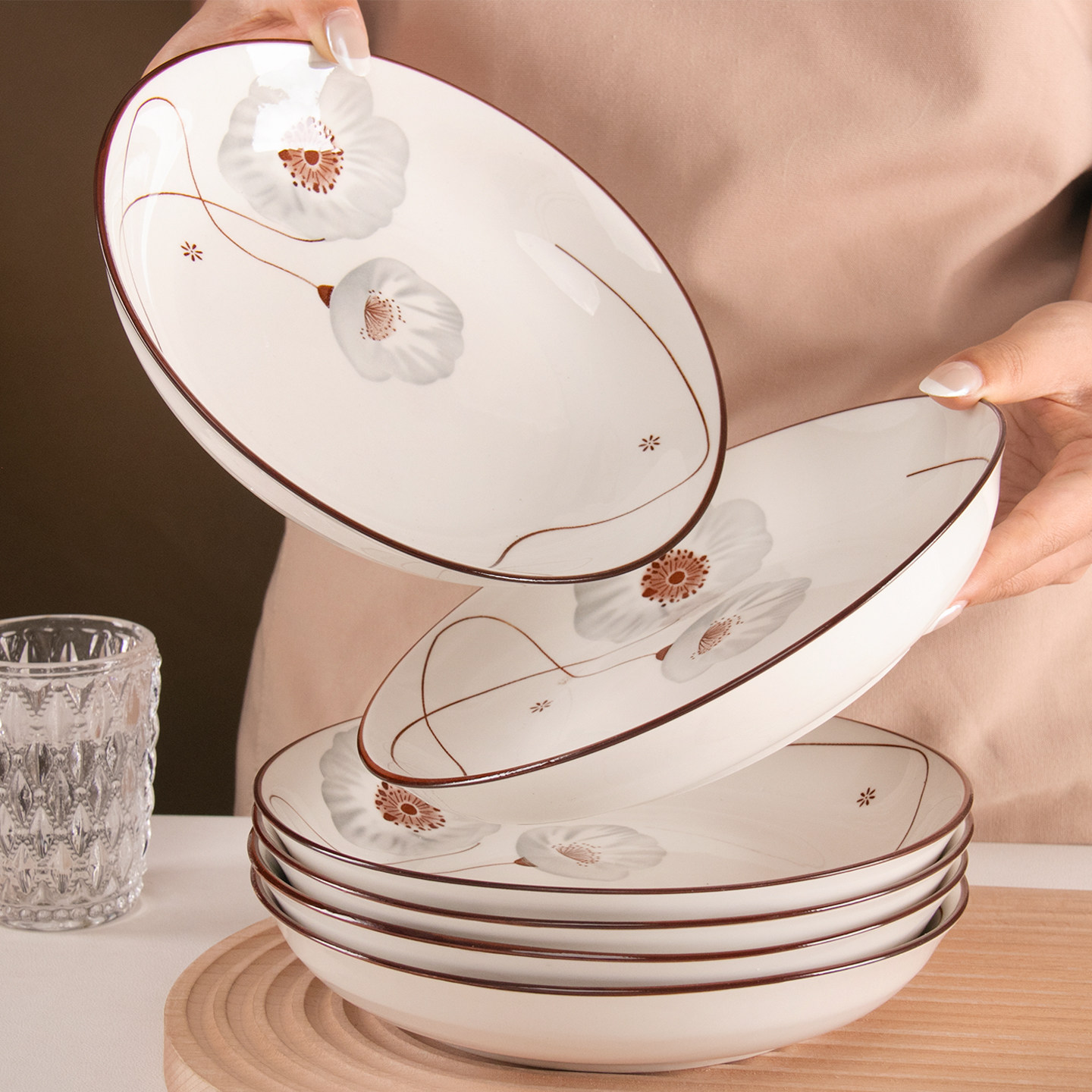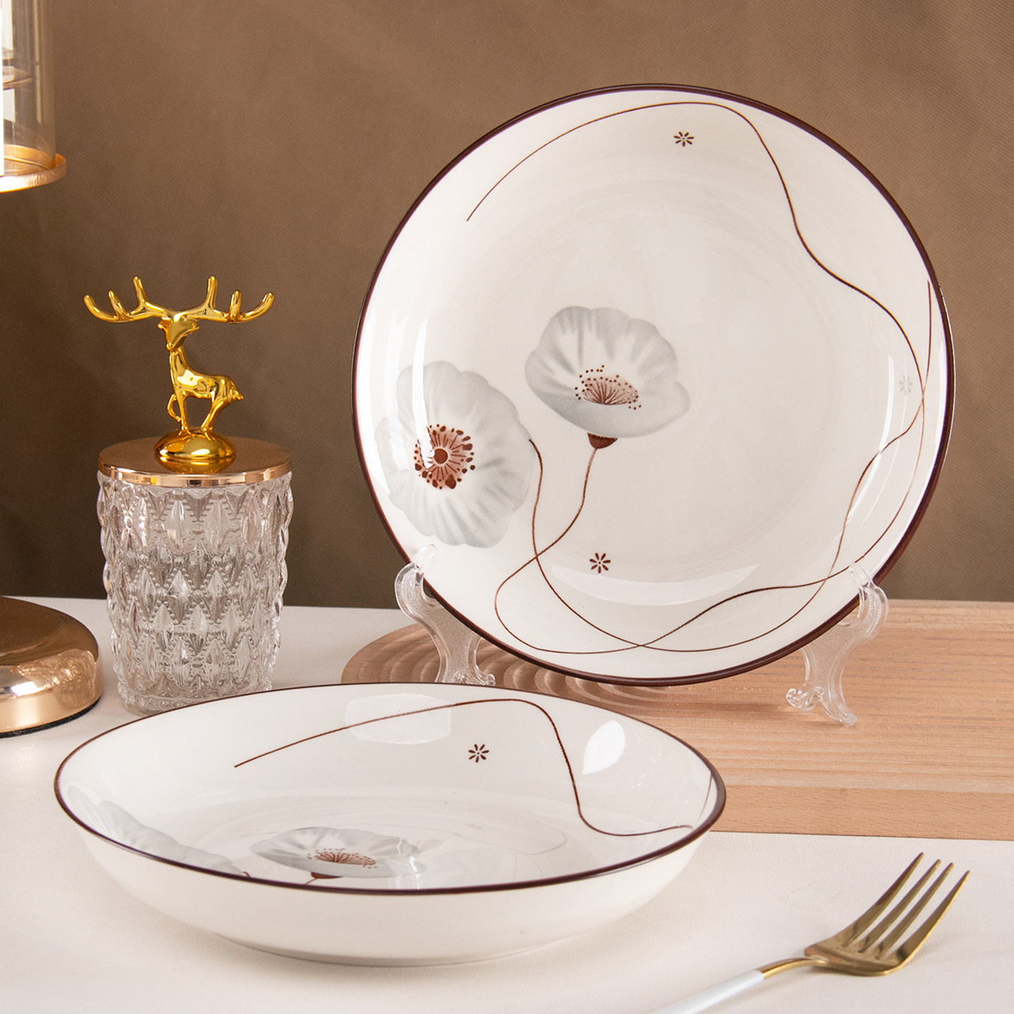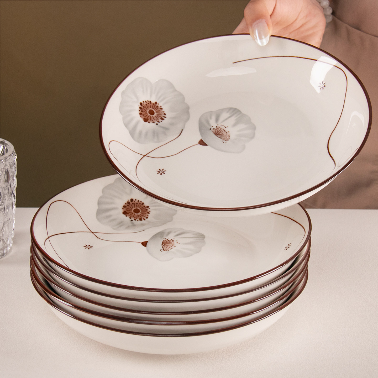 8英寸盘子家用菜盘加厚圆盘精致陶瓷釉下彩餐盘水果盘碟子套装