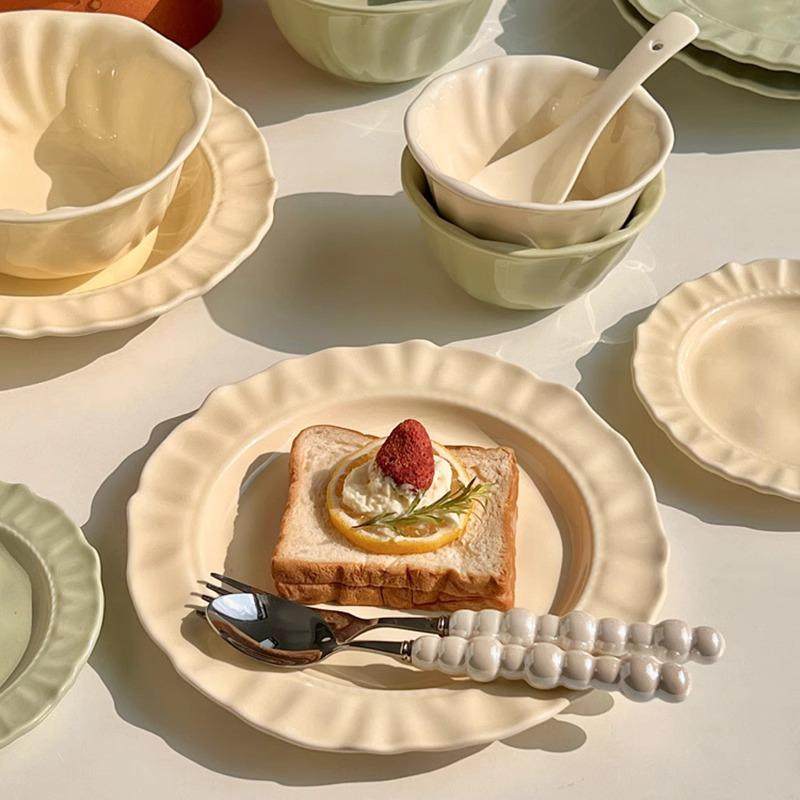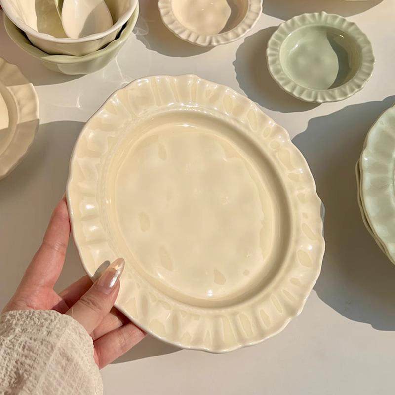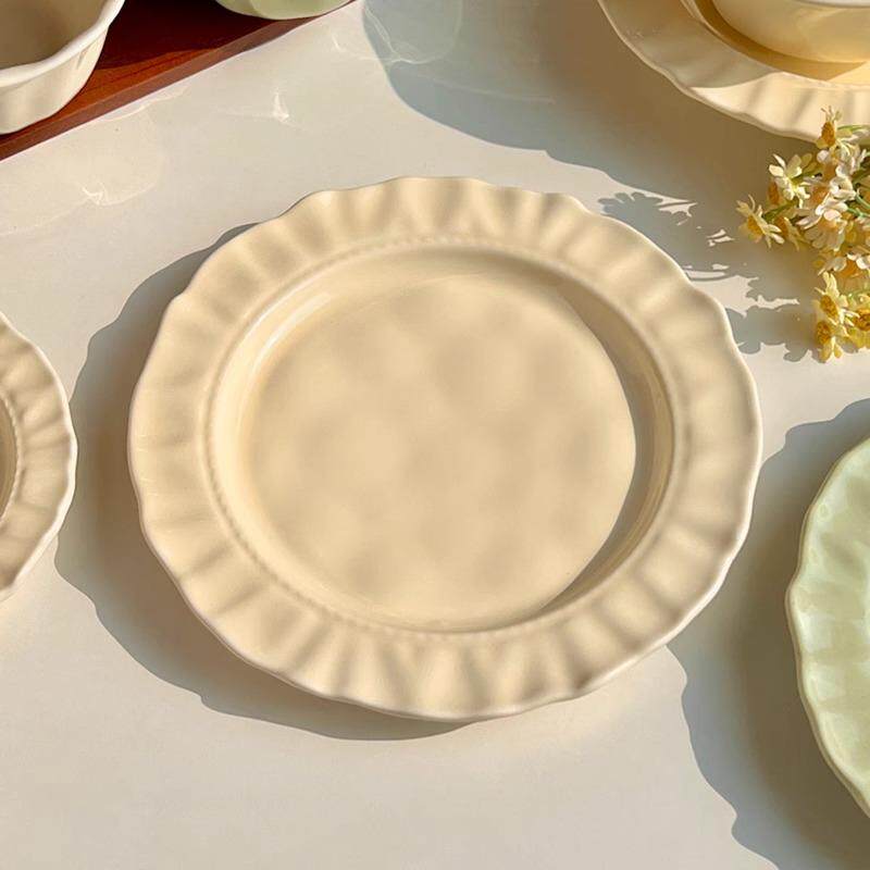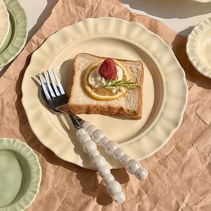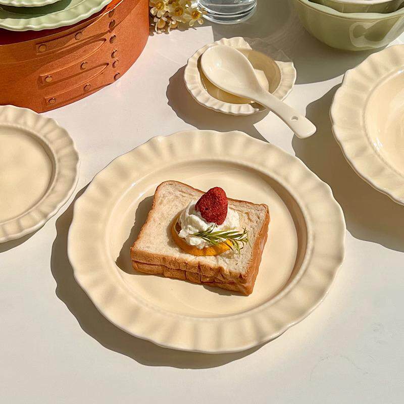 盘子家用餐盘碗碟高级感ins奶油风陶瓷餐具菜盘早餐盘水果甜品盘