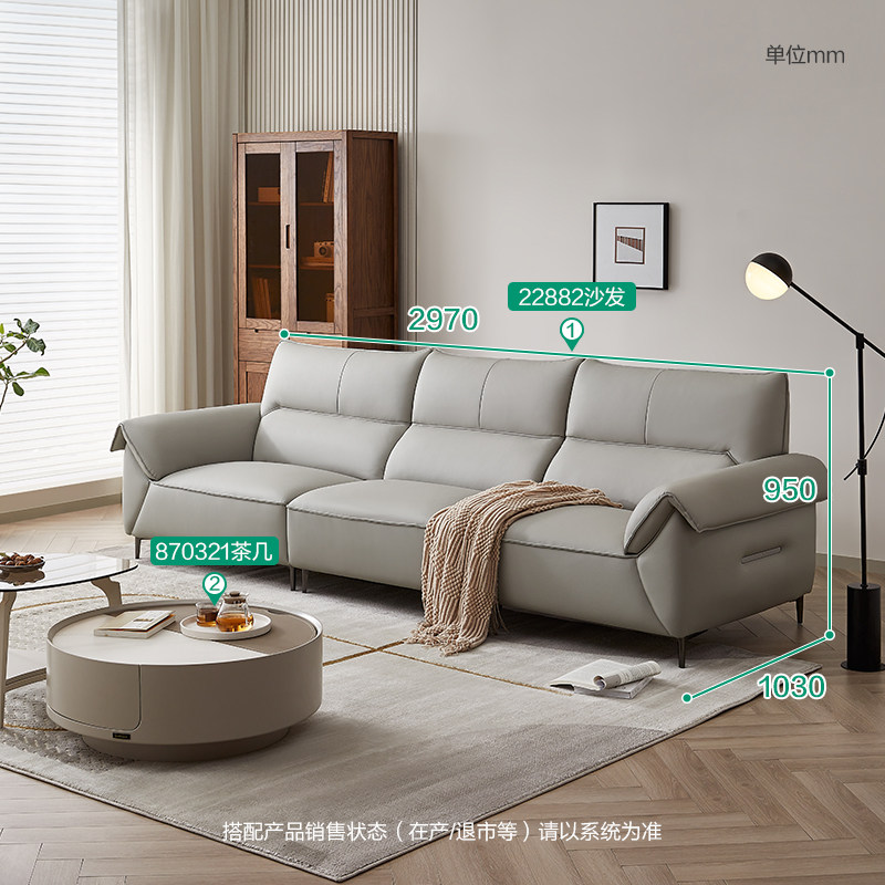 全友家居 门店同款 时尚简约 22882 一字型直排皮艺牛皮真皮沙发