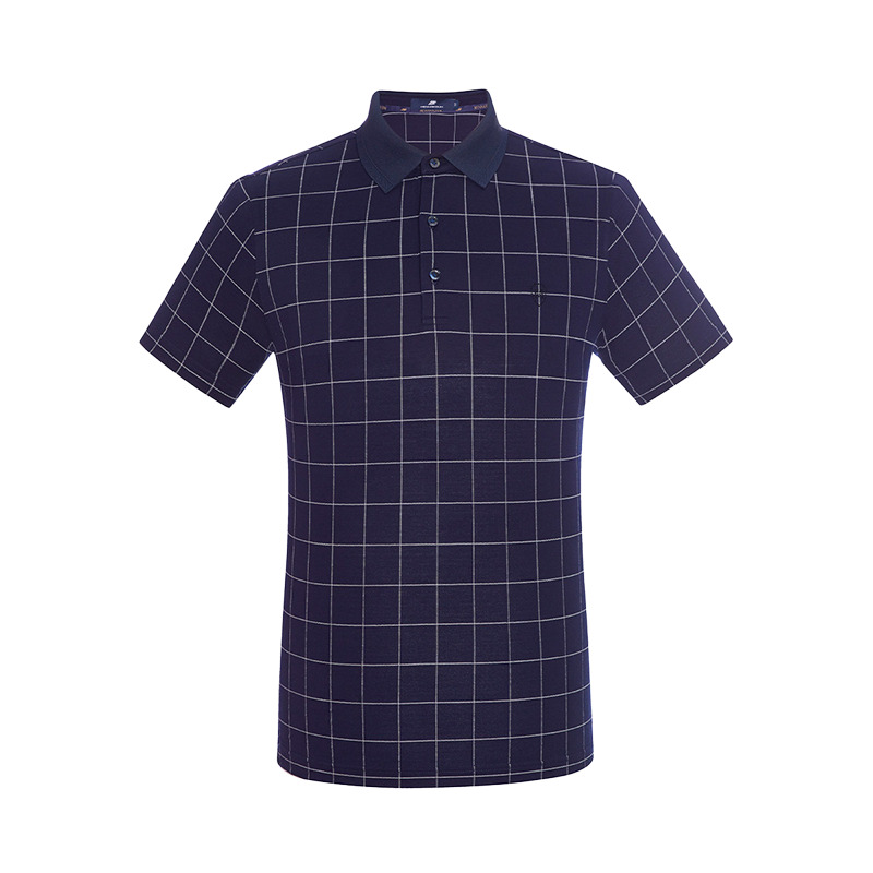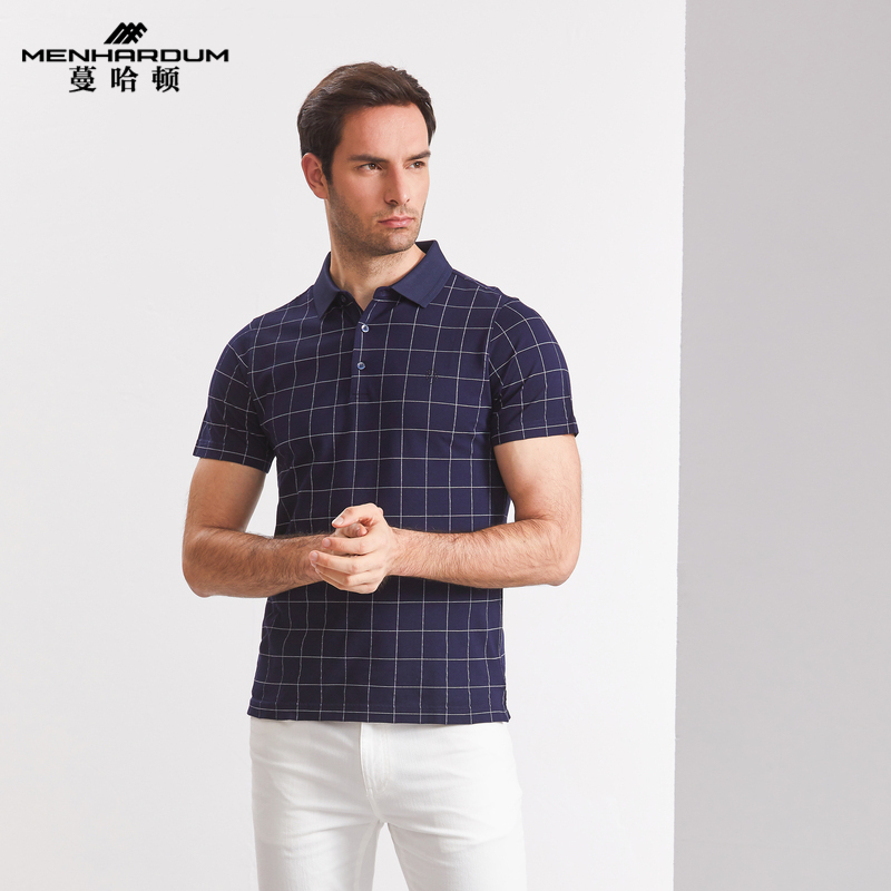 Menhardum/蔓哈顿夏季棉桑蚕丝混纺短袖Polo衫商务格子翻领T恤男