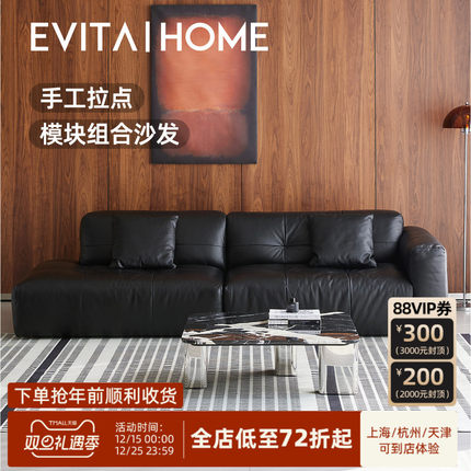 轻奢复古全真皮沙发客厅直排落地组合意式极简风豆腐块转角皮沙发