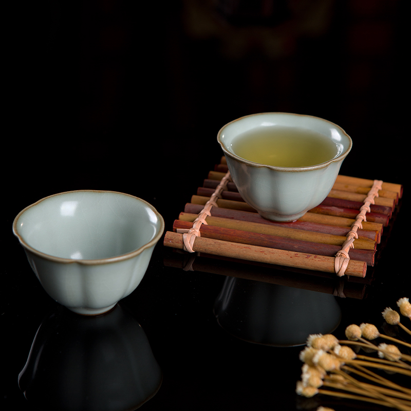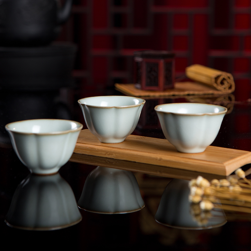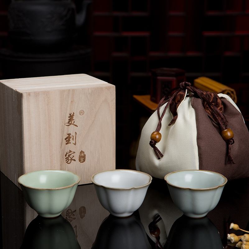 美到家汝窑小葵花茶杯冰裂釉陶瓷茶杯可养开片礼盒茶具套装