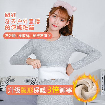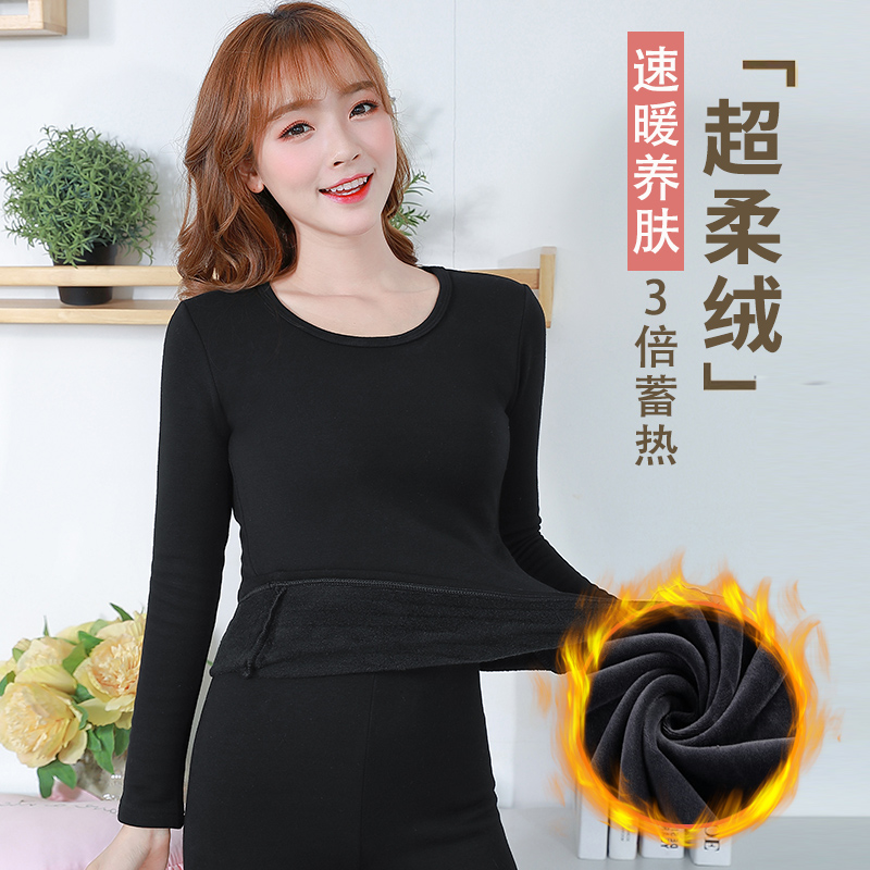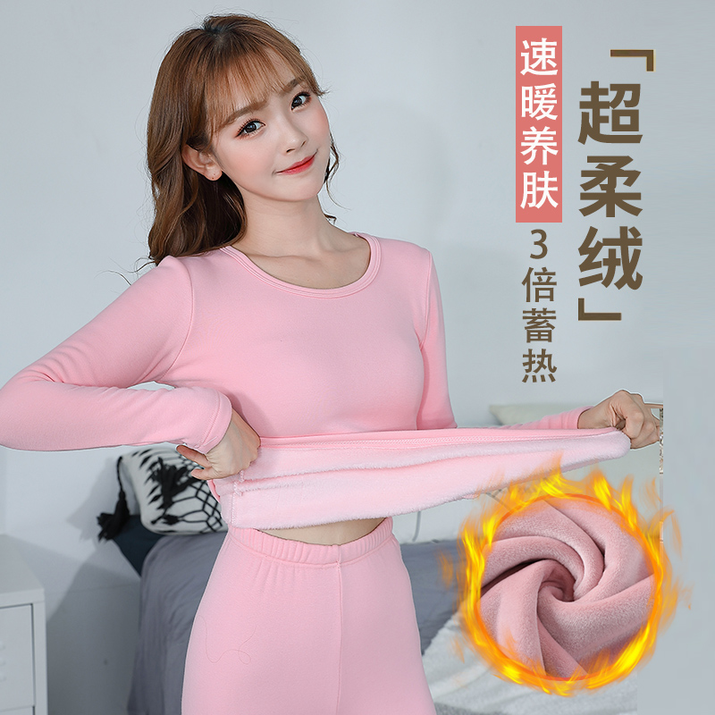 加绒加厚保暖内衣女套装学生打底防寒秋衣秋裤美体发热修身棉毛衫