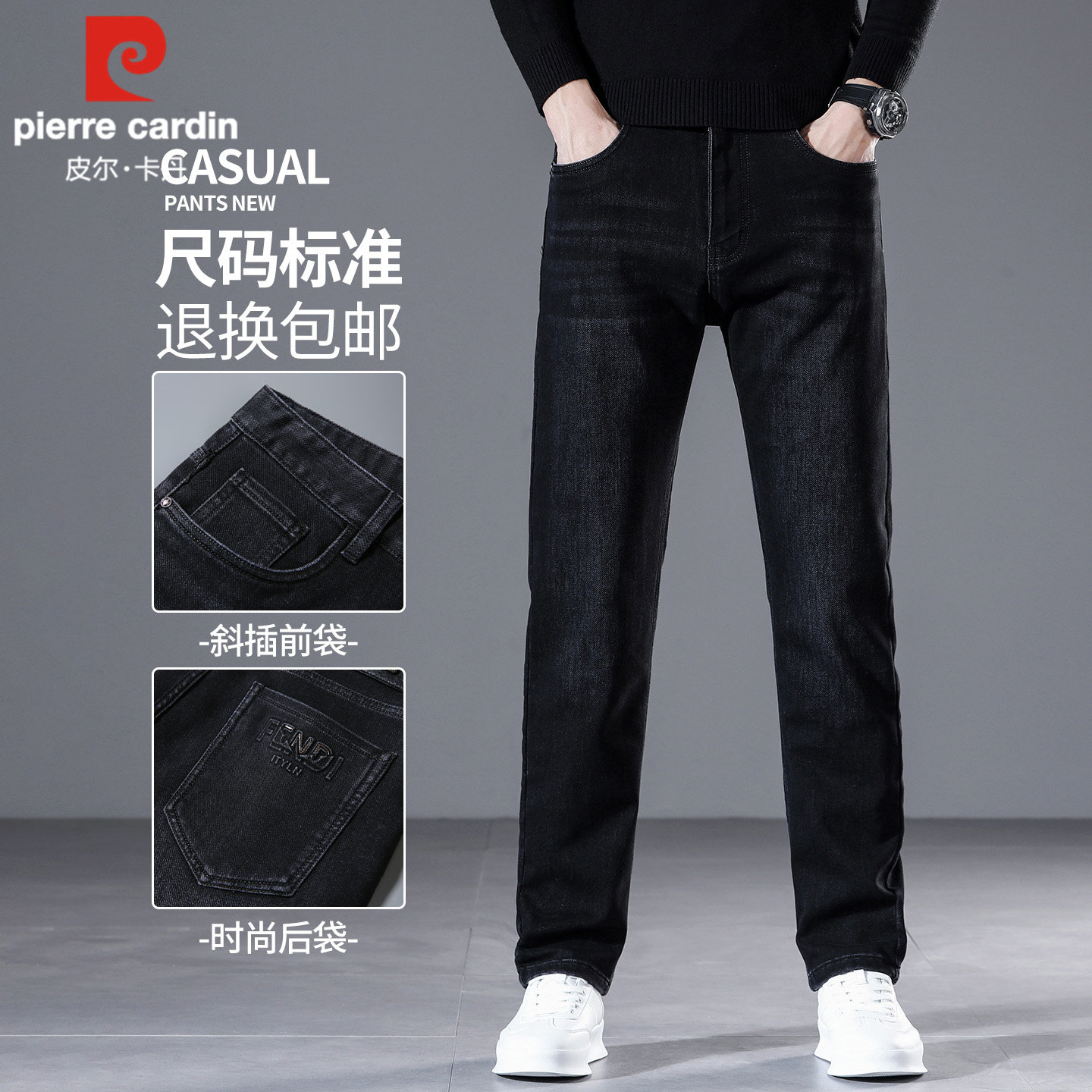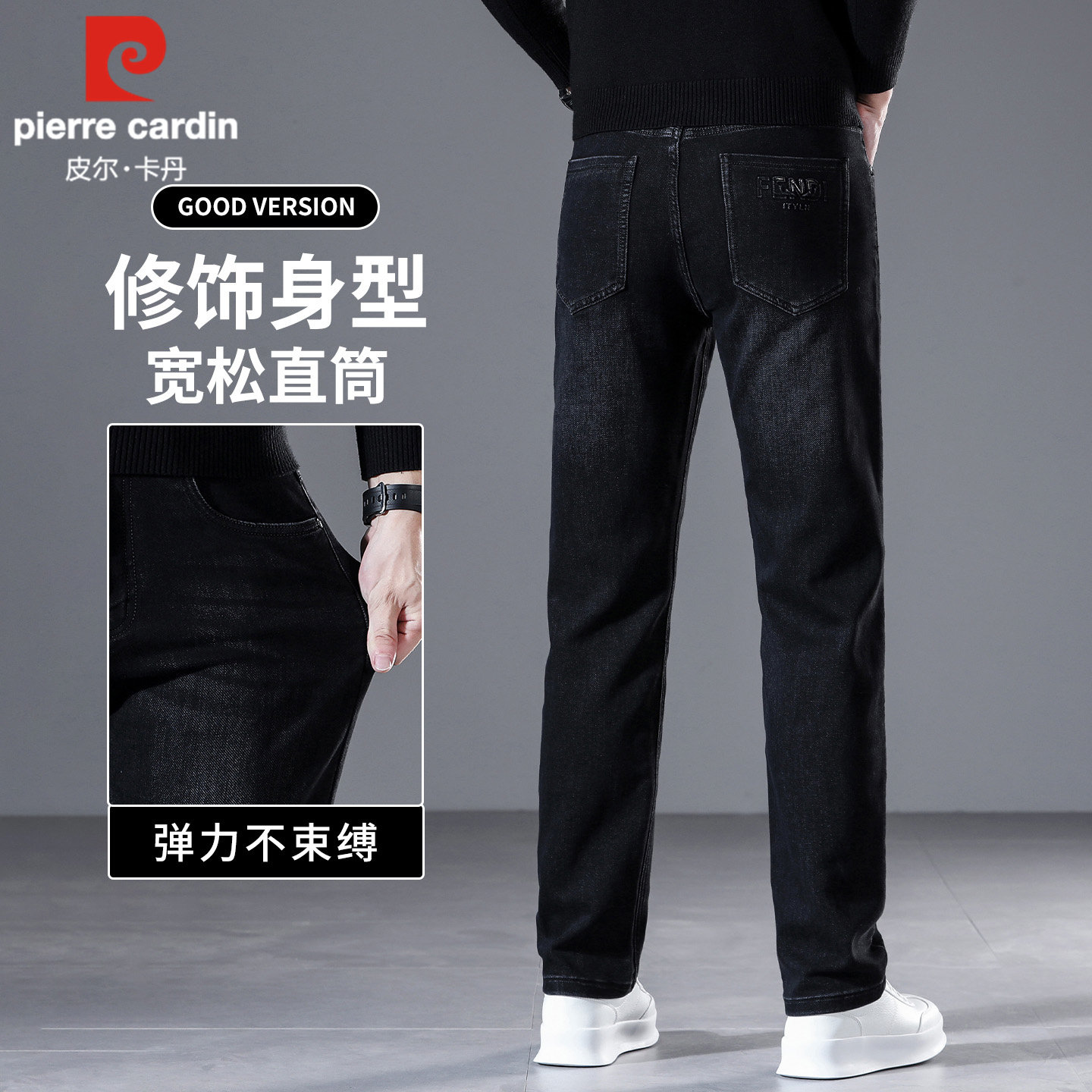 皮尔卡丹高端冬季牛仔裤男宽松
