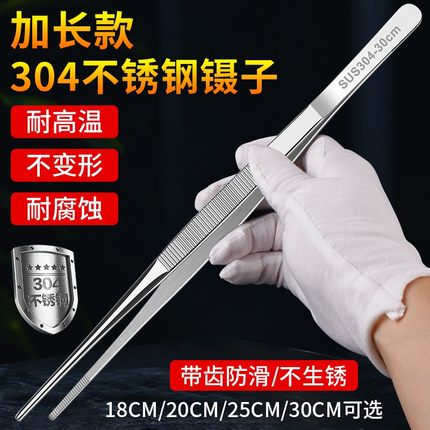 加长304不锈钢镊子圆弯头加厚维修夹子工具鱼缸多肉水草敷料多用