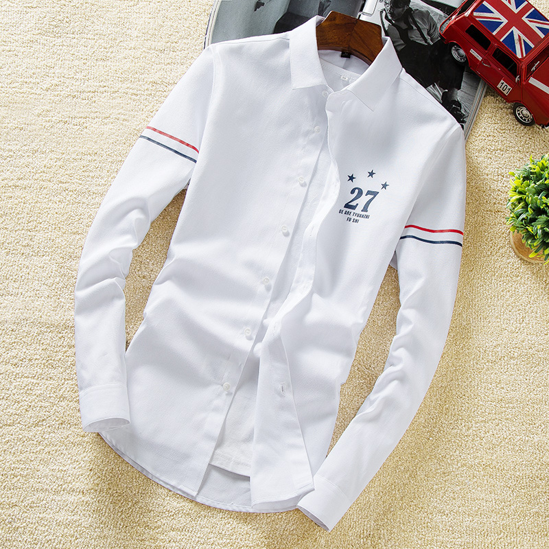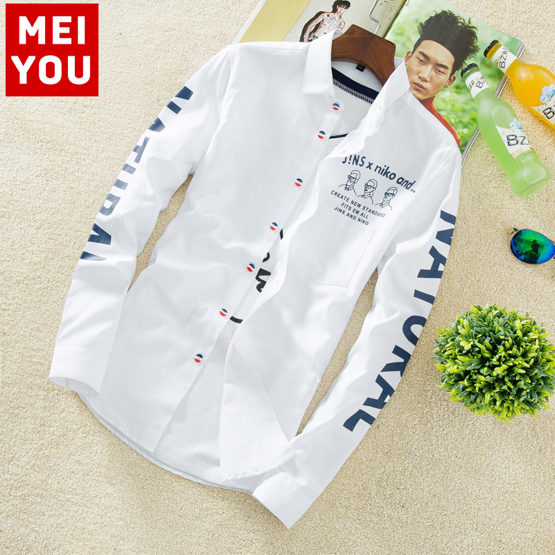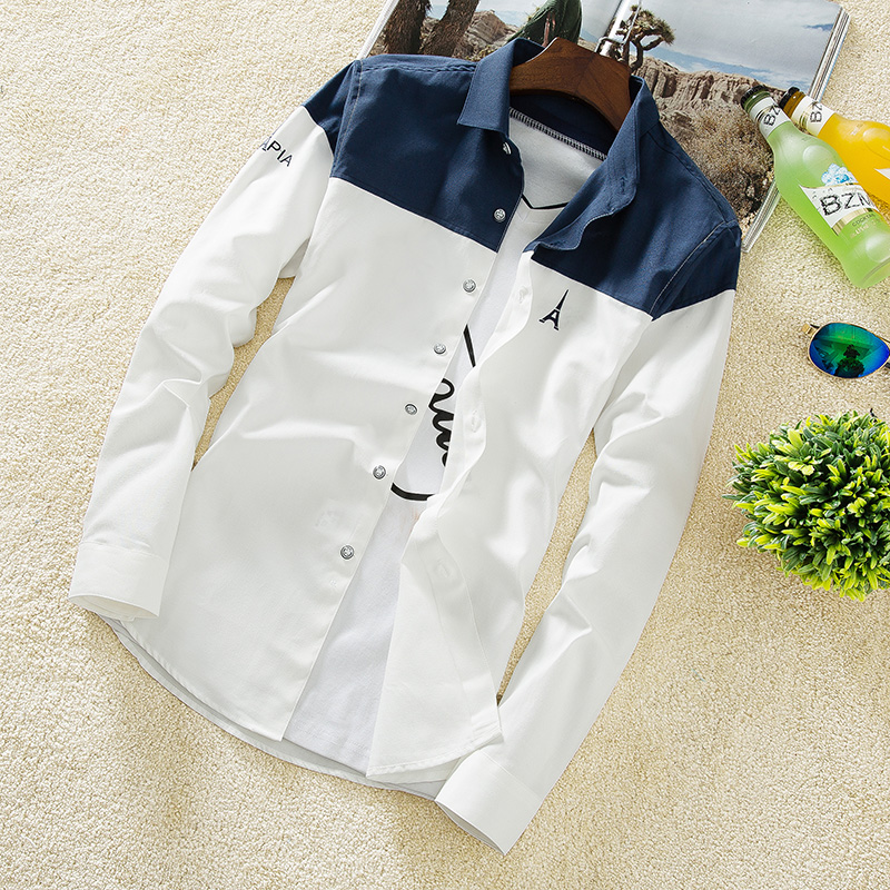 新款青少年韩版修身潮流长袖衬衫