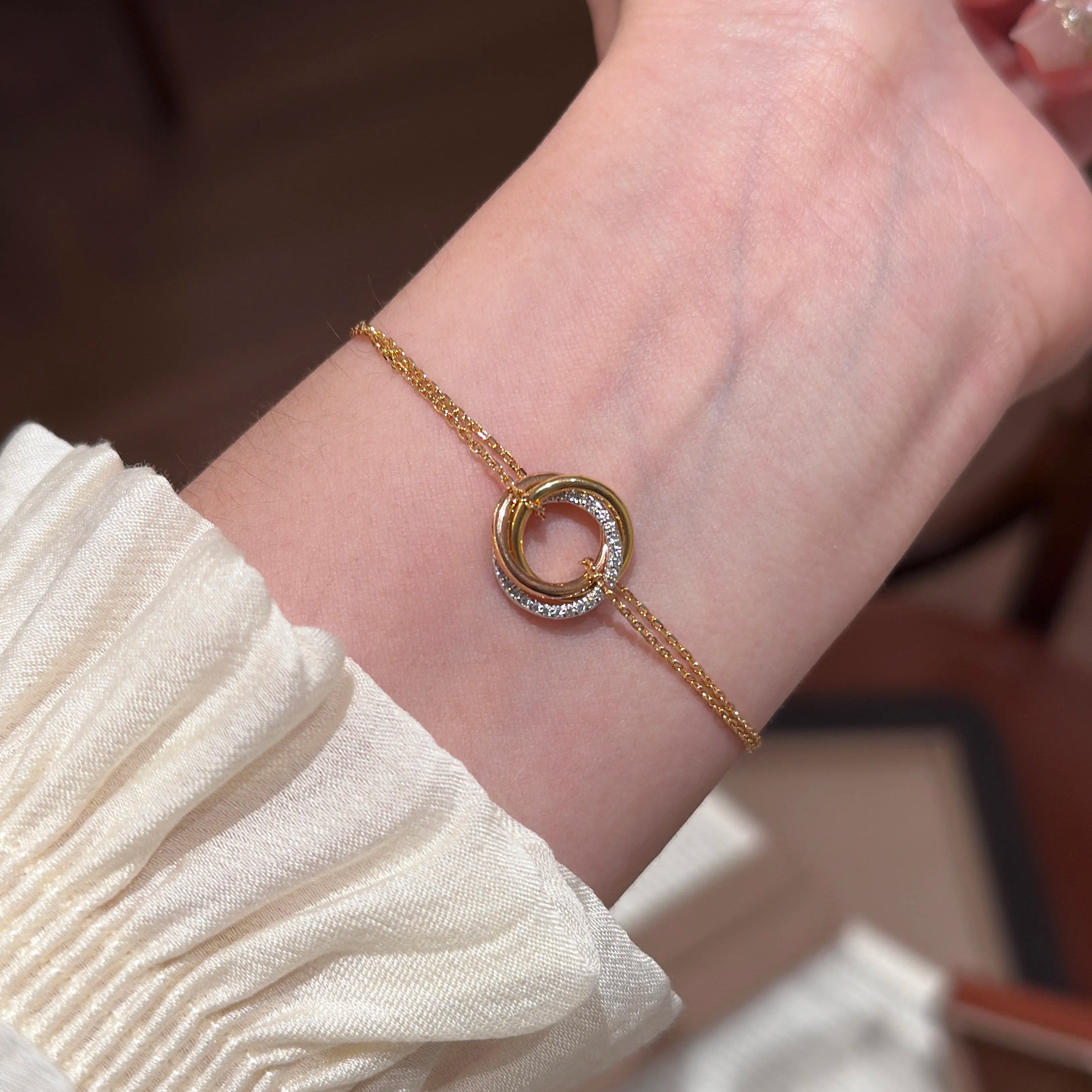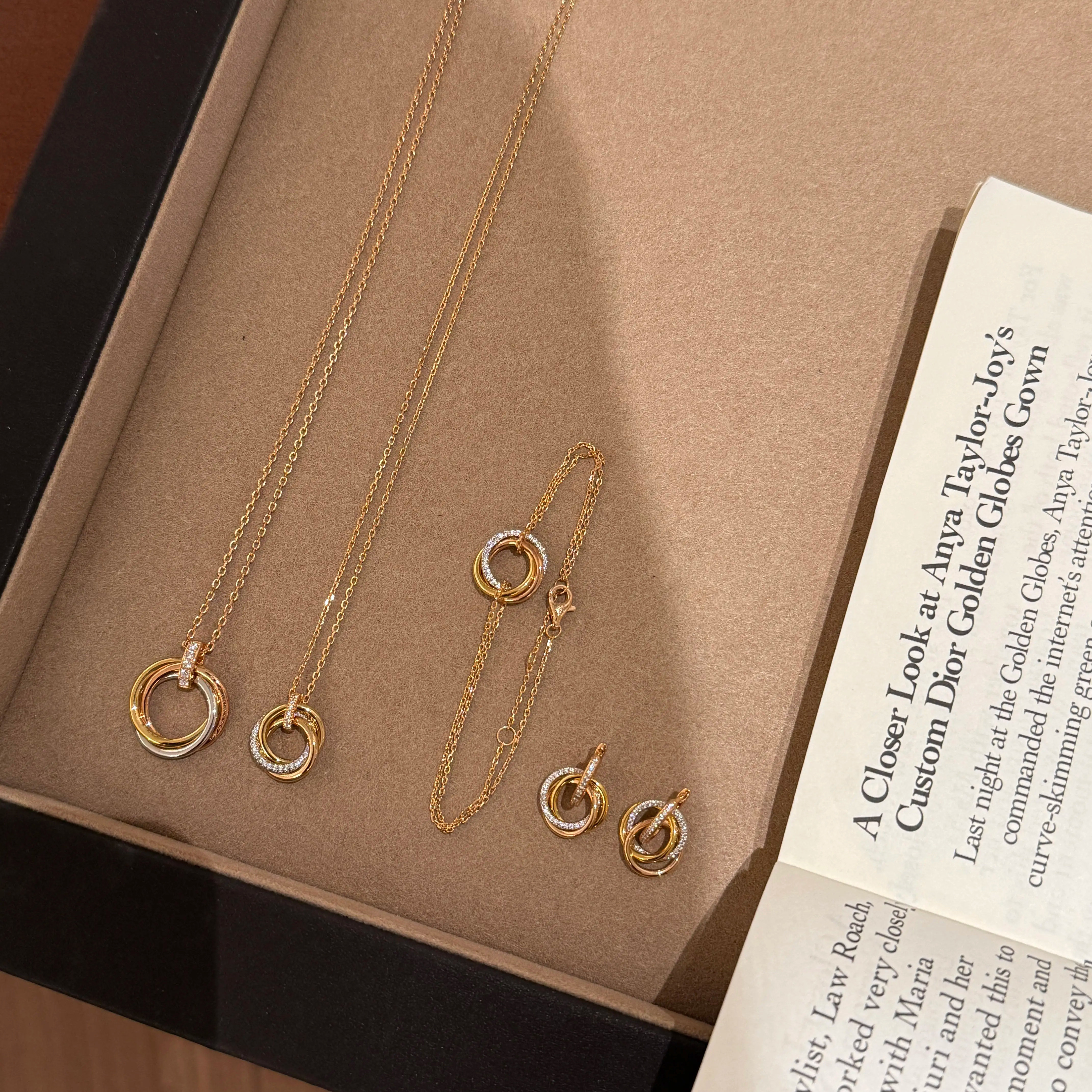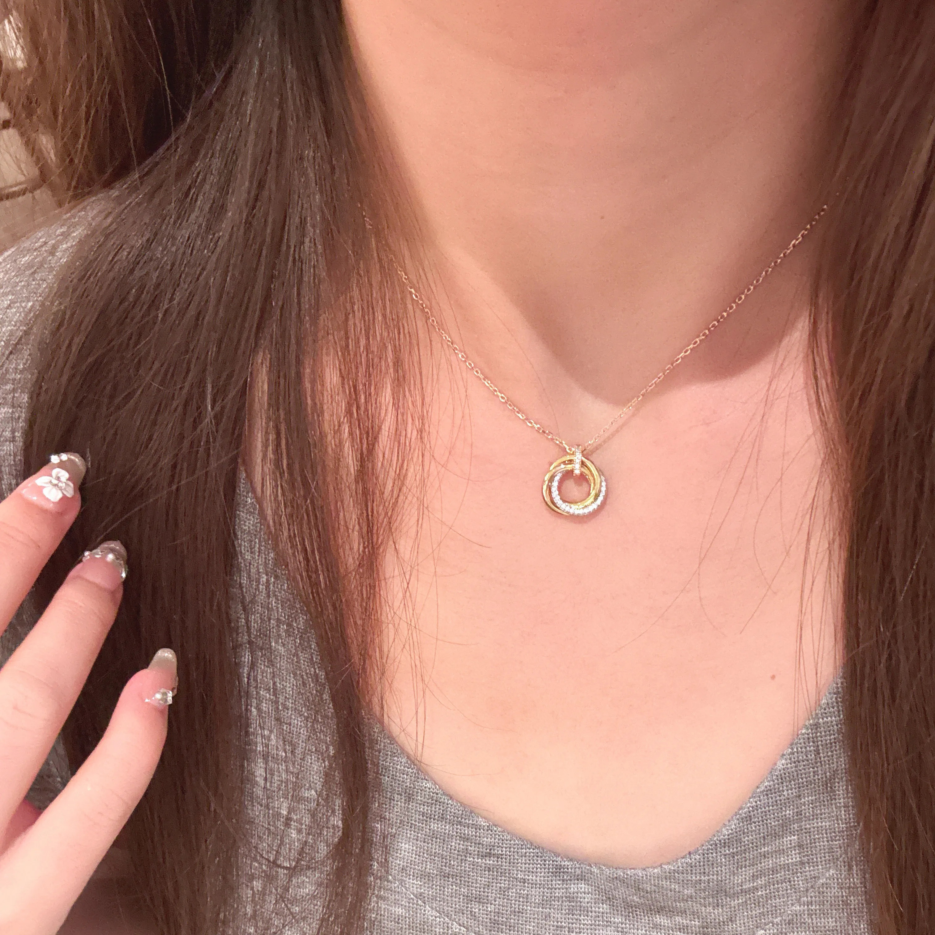 官方正品三环三色镶钻项链女士轻奢小众高级感锁骨链套装新年礼物