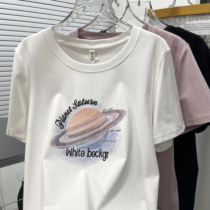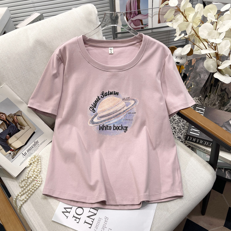 胡子叔大码女装夏季新款正肩短袖T恤女显瘦百搭印花半袖体恤上衣