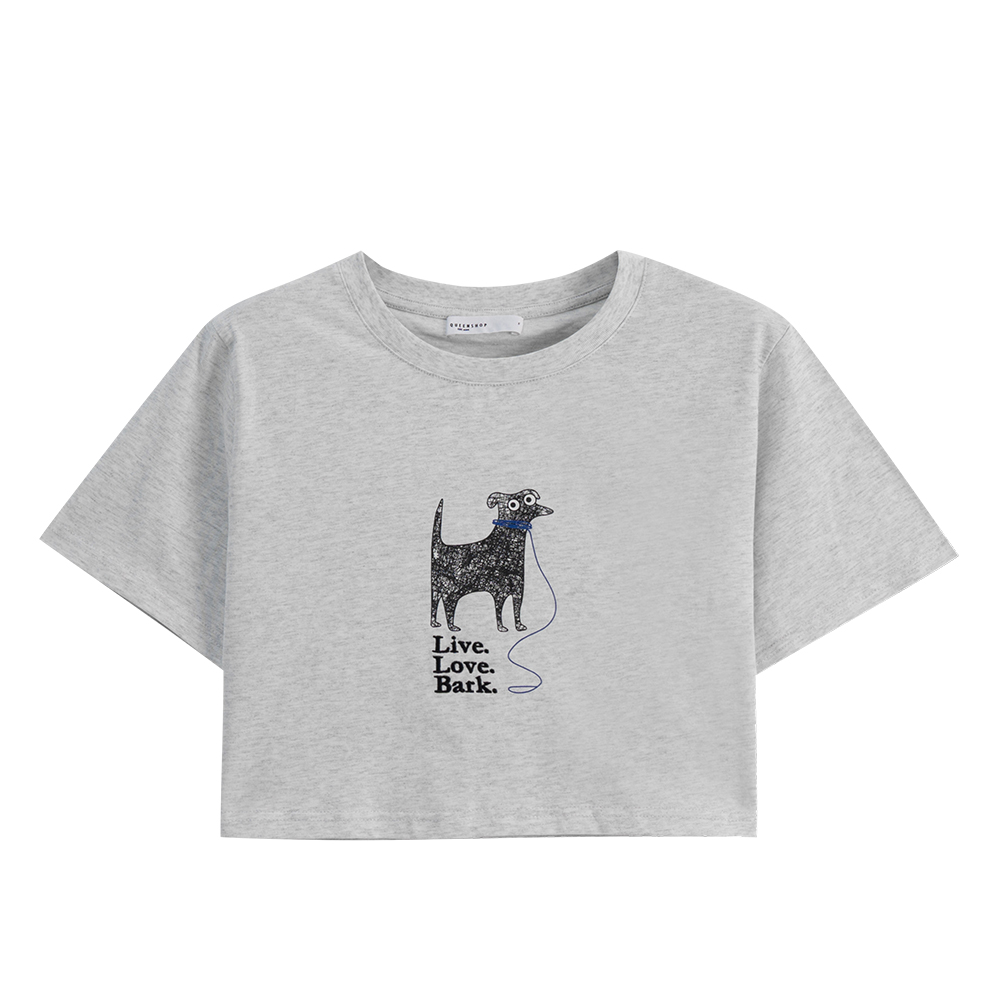 QUEENSHOP 2025春夏新品女装手绘小狗刺绣印图短版上衣01190285