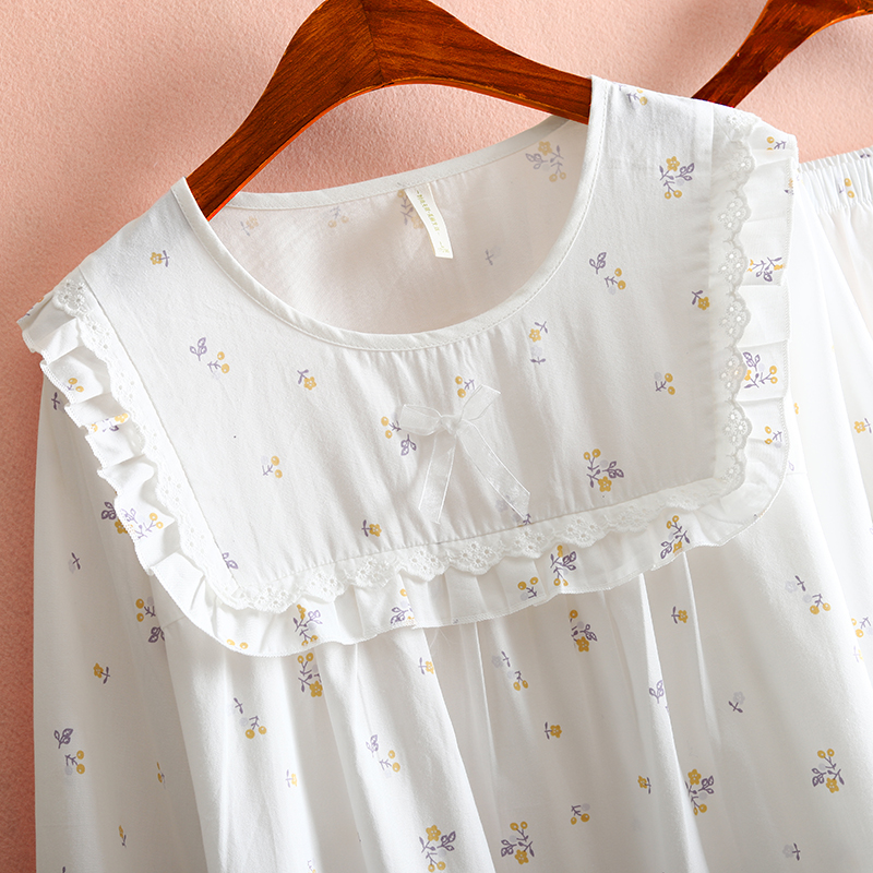 薄款日系田园风100%全棉斜纹布睡衣女春夏长袖纯棉布公主风家居服