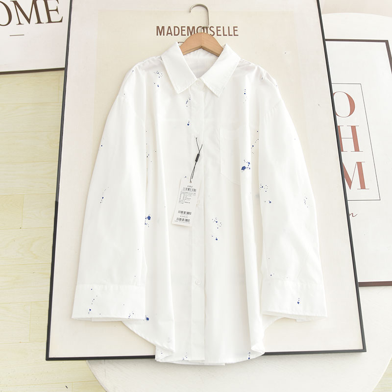 麦系の2025秋新款百搭韩版宽松显瘦休闲百搭白色长袖衬衫上衣 女
