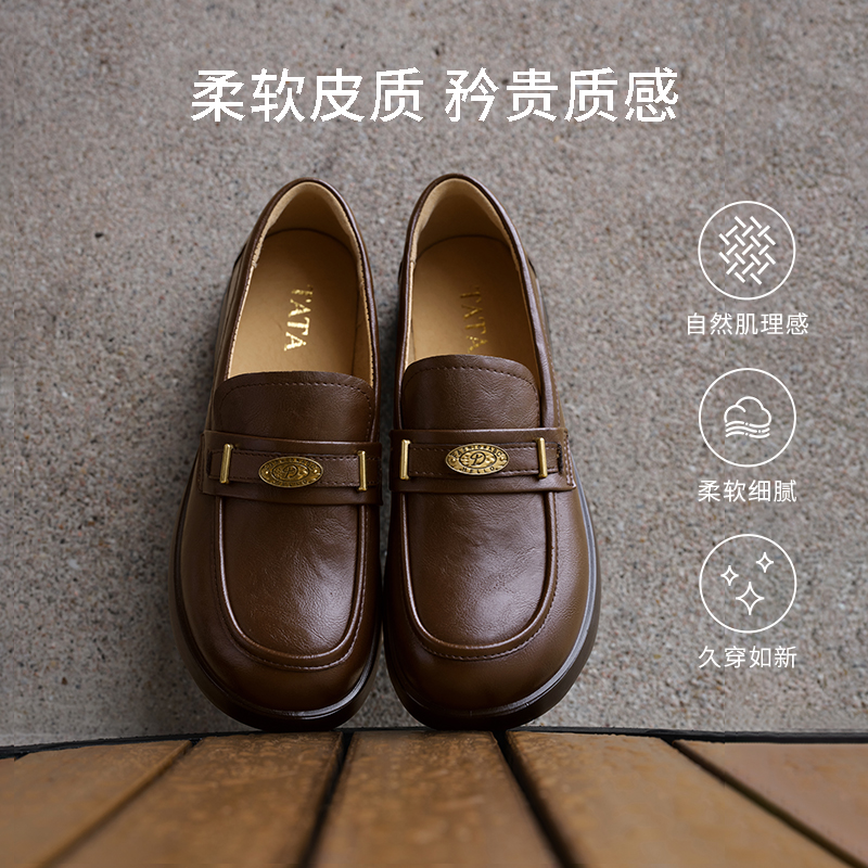 TATA他她女鞋六便士黑色小皮鞋休闲乐福鞋女鞋百搭单鞋ETV01CA5
