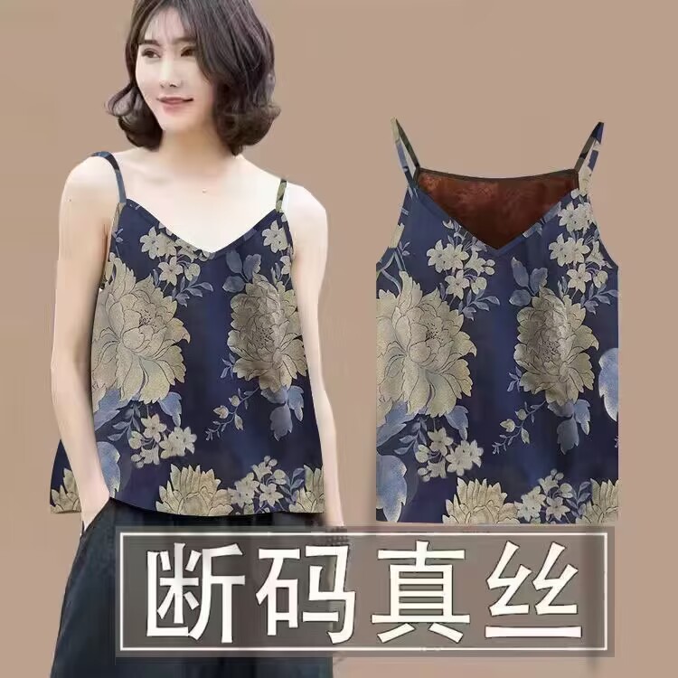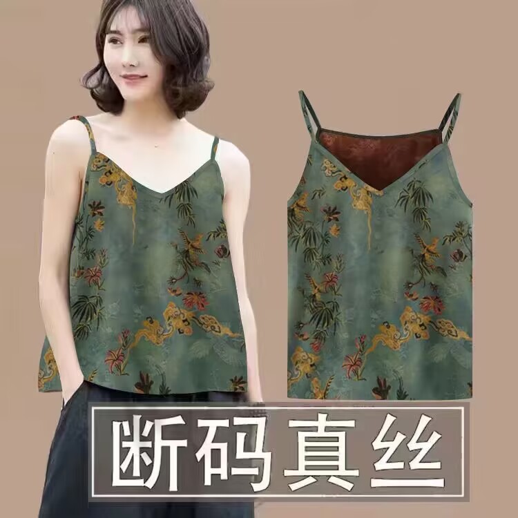 100%桑蚕丝香云纱吊带背心女2025夏季新款外穿内搭真丝无袖打底衫