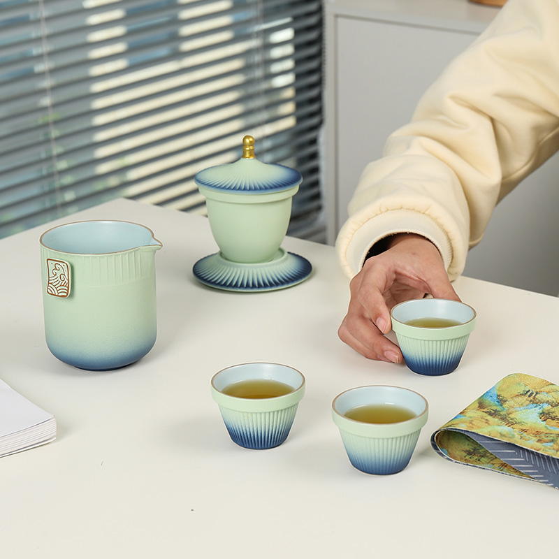 渐变快客杯户外陶瓷一壶s三杯一杯便携式旅行功夫茶具套装简约