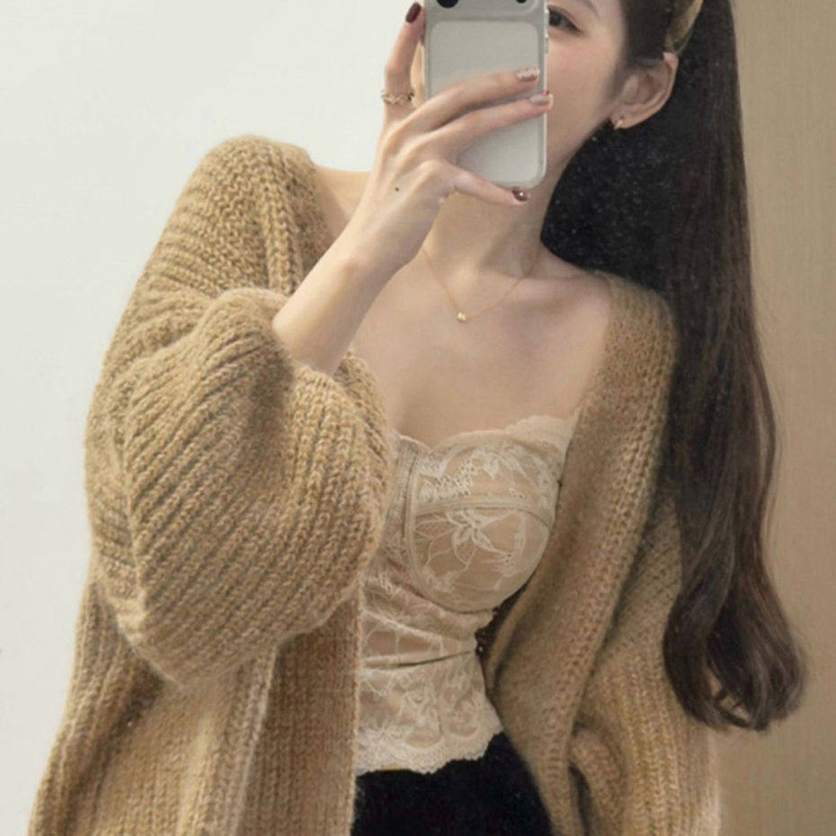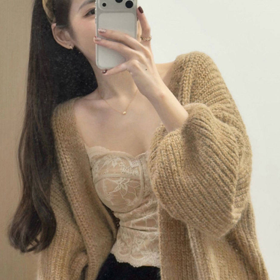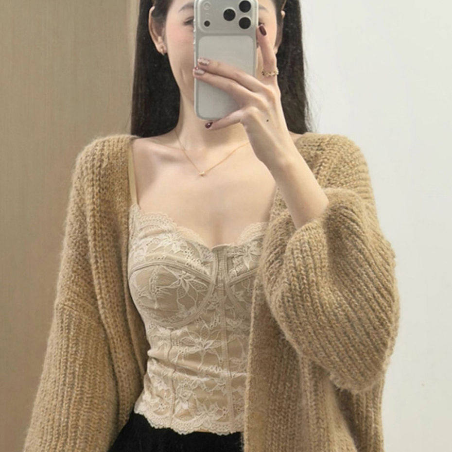 鱼骨胸衣蕾丝吊带背心女内搭秋冬外穿美背文胸一体带胸垫打底上衣