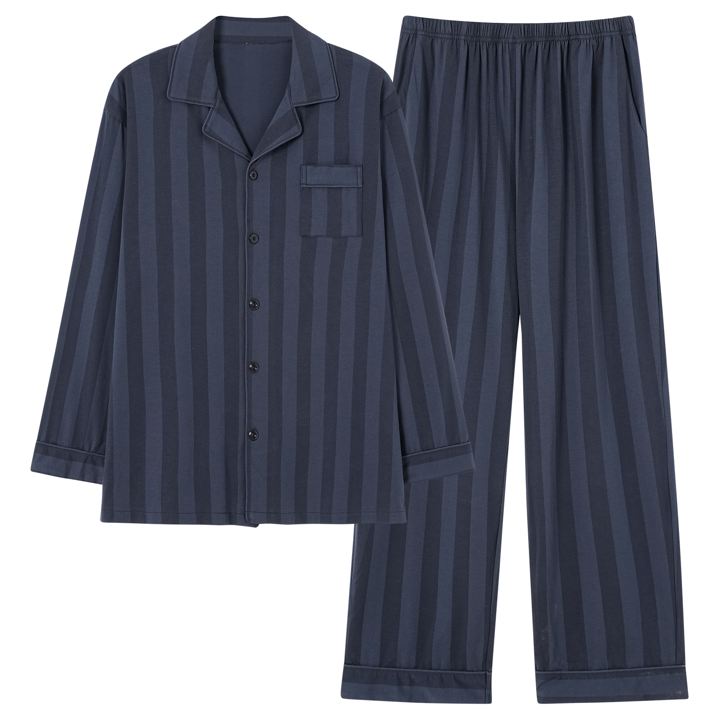 芬腾可安条纹男士睡衣男款春秋季长袖大码2025新款纯棉青年家居服