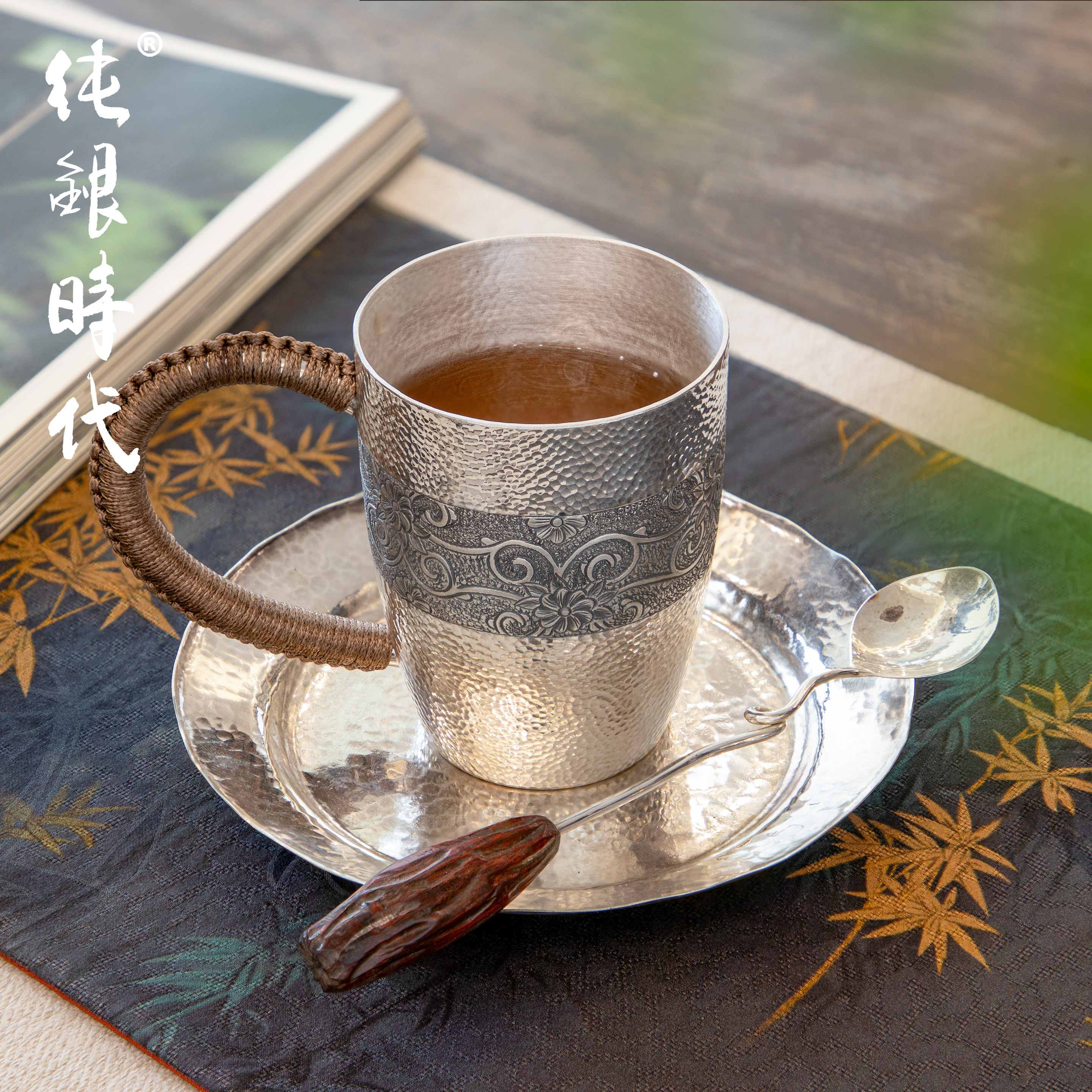 纯银时代 木柄茶勺纯银999手工防烫咖啡搅拌勺茶匙茶具配件送礼