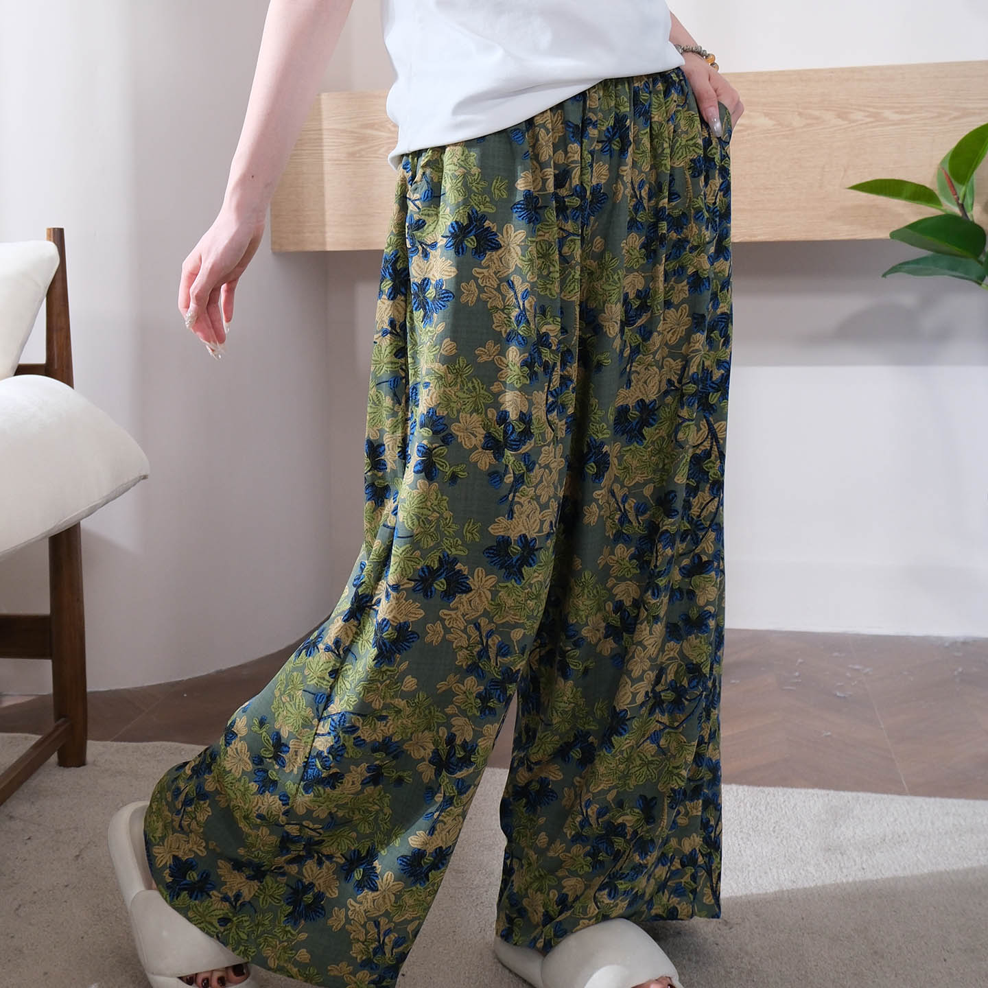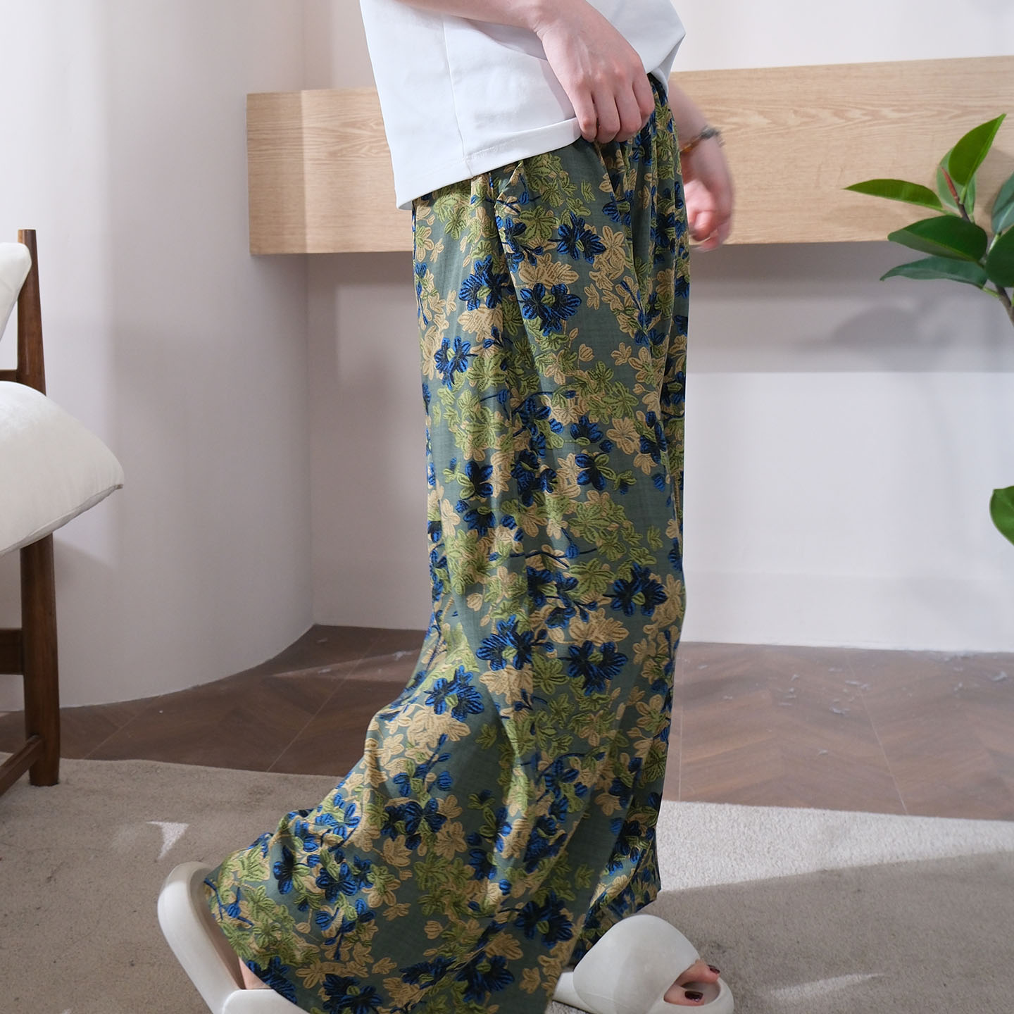 2025新款睡裤女夏棉绸中老年妈妈款家居裙裤宽松大码松紧腰休闲裤