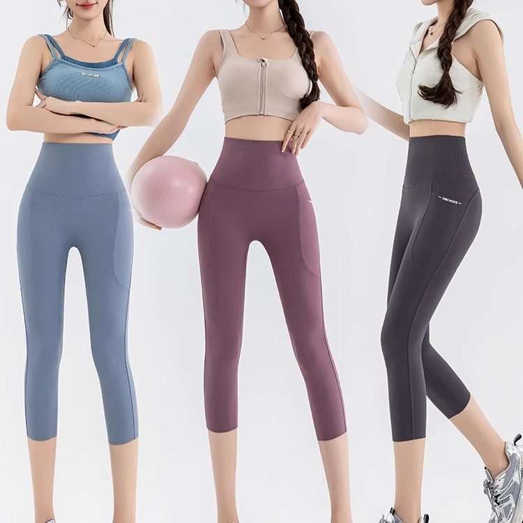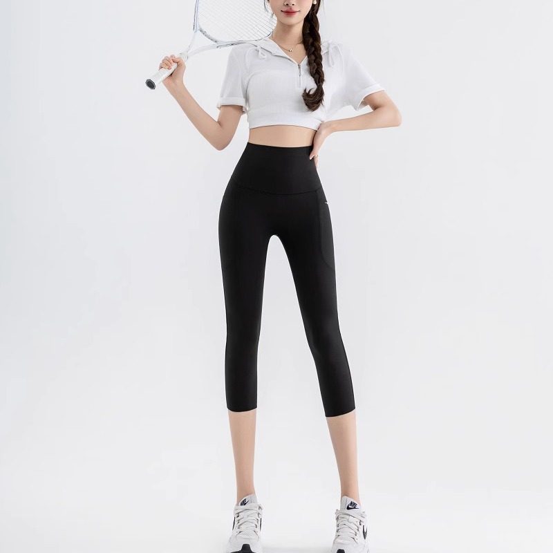 大码高腰七分瑜伽裤女夏季薄款外穿显瘦洋气健身网球骑行鲨鱼裤子