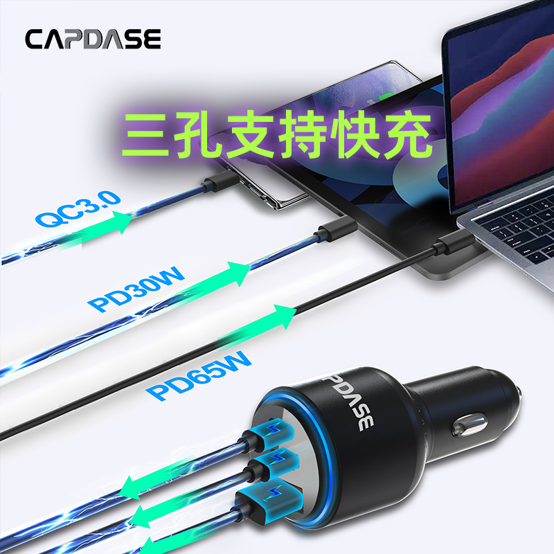 卡登仕96W一拖三TypeC车载充电器适用苹果手机华为笔记本快充车充