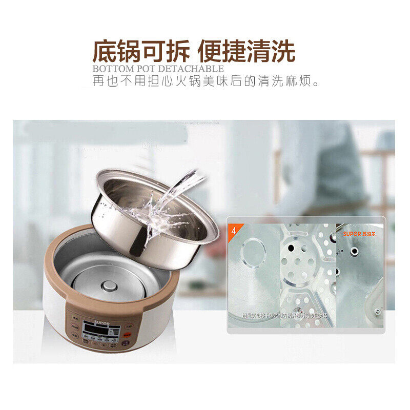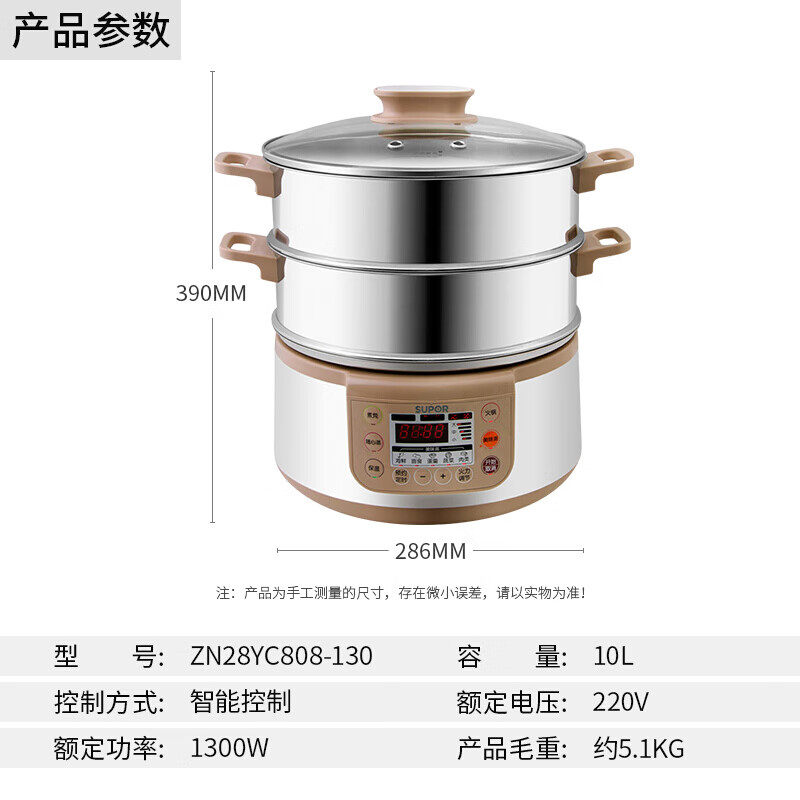 苏泊尔电蒸锅智能预约不锈钢蒸煮锅家用双层多功能可拆洗火锅煮锅