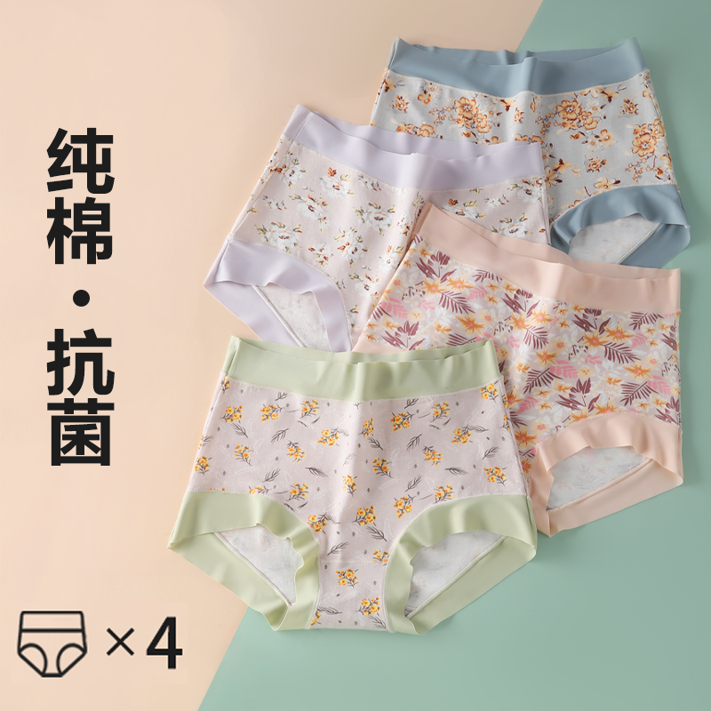 纯棉高腰女士内裤全棉10A抗菌透气舒适新疆长绒棉碎花款三角短裤