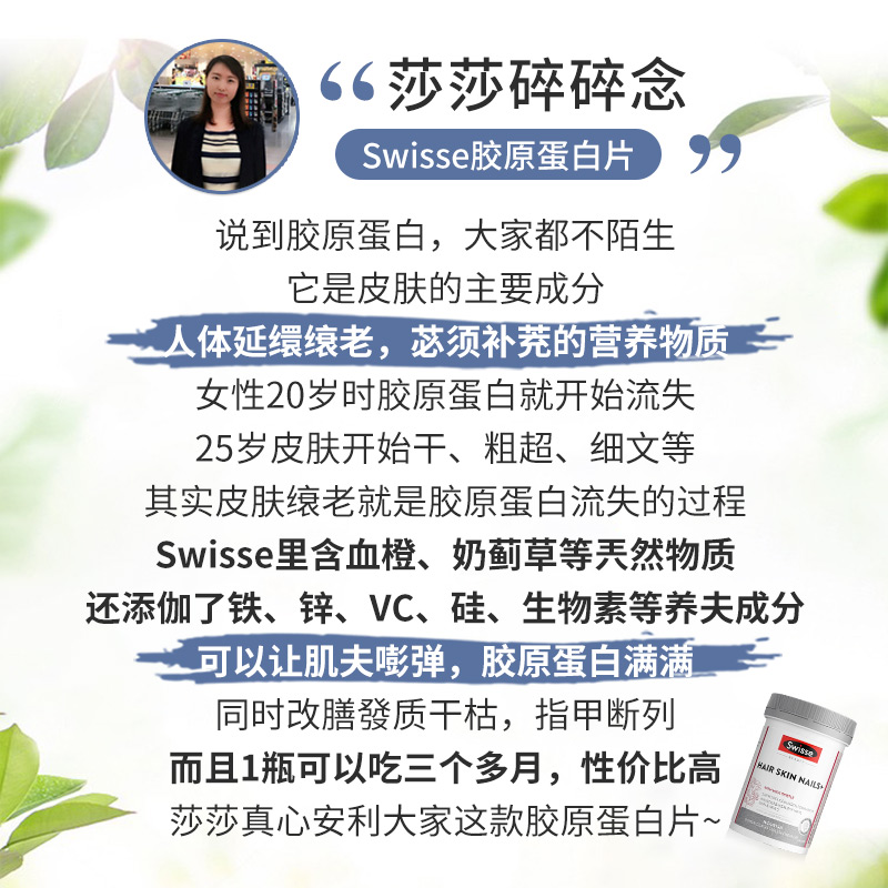澳洲斯维诗Swisse胶原蛋白片血橙精华护发护甲片促胶原生成100片