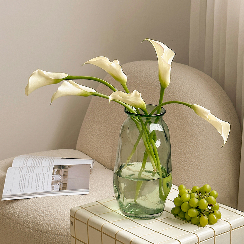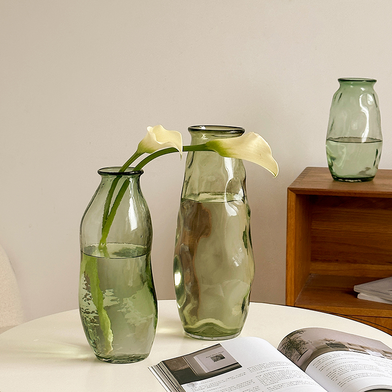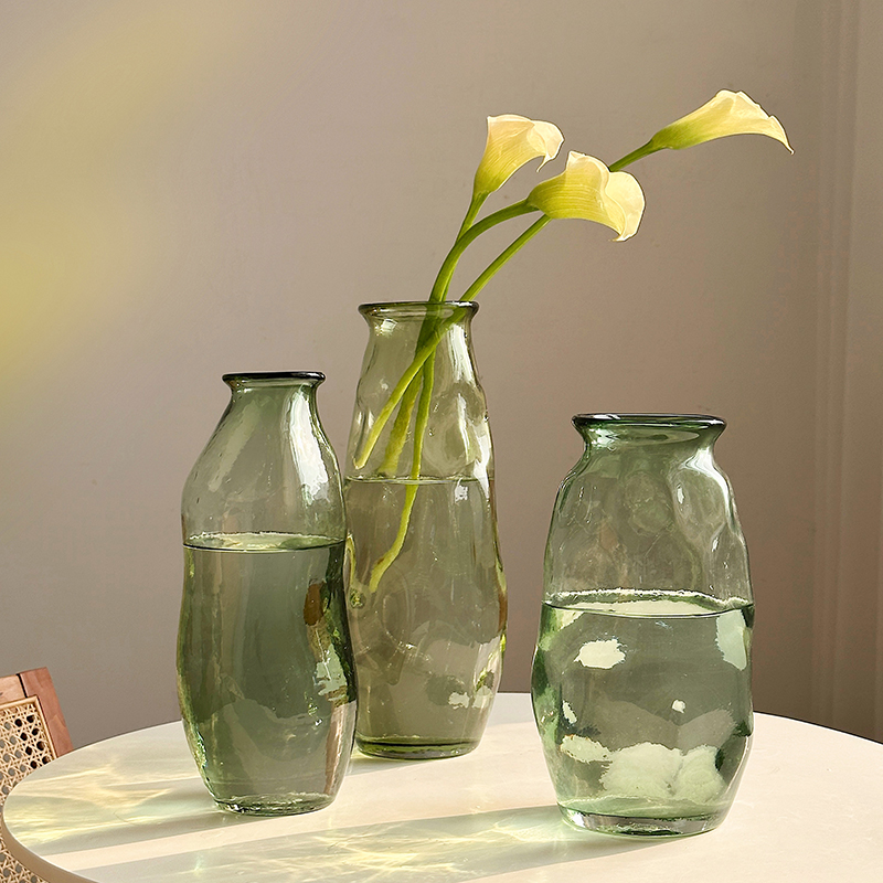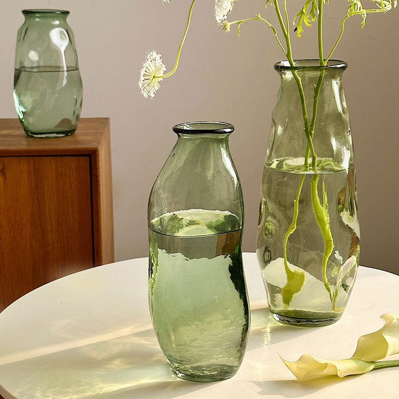 绿色不规则玻璃花瓶透明插花水培高级感复古法式水培鲜花富贵竹