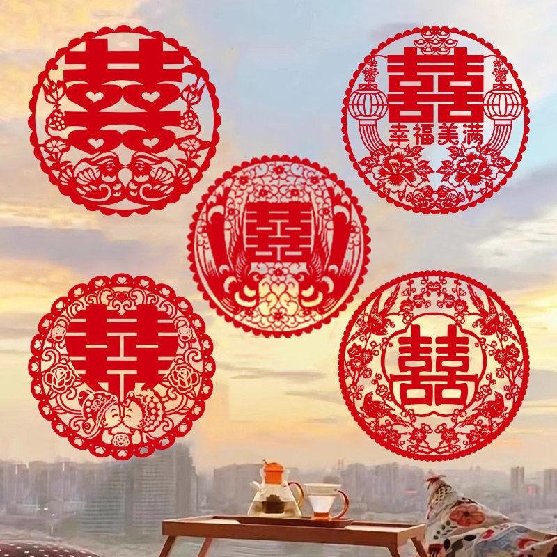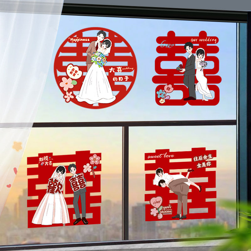 静电贴结婚专用喜字贴婚礼玻璃窗户囍字窗花贴纸装饰客厅婚房布置