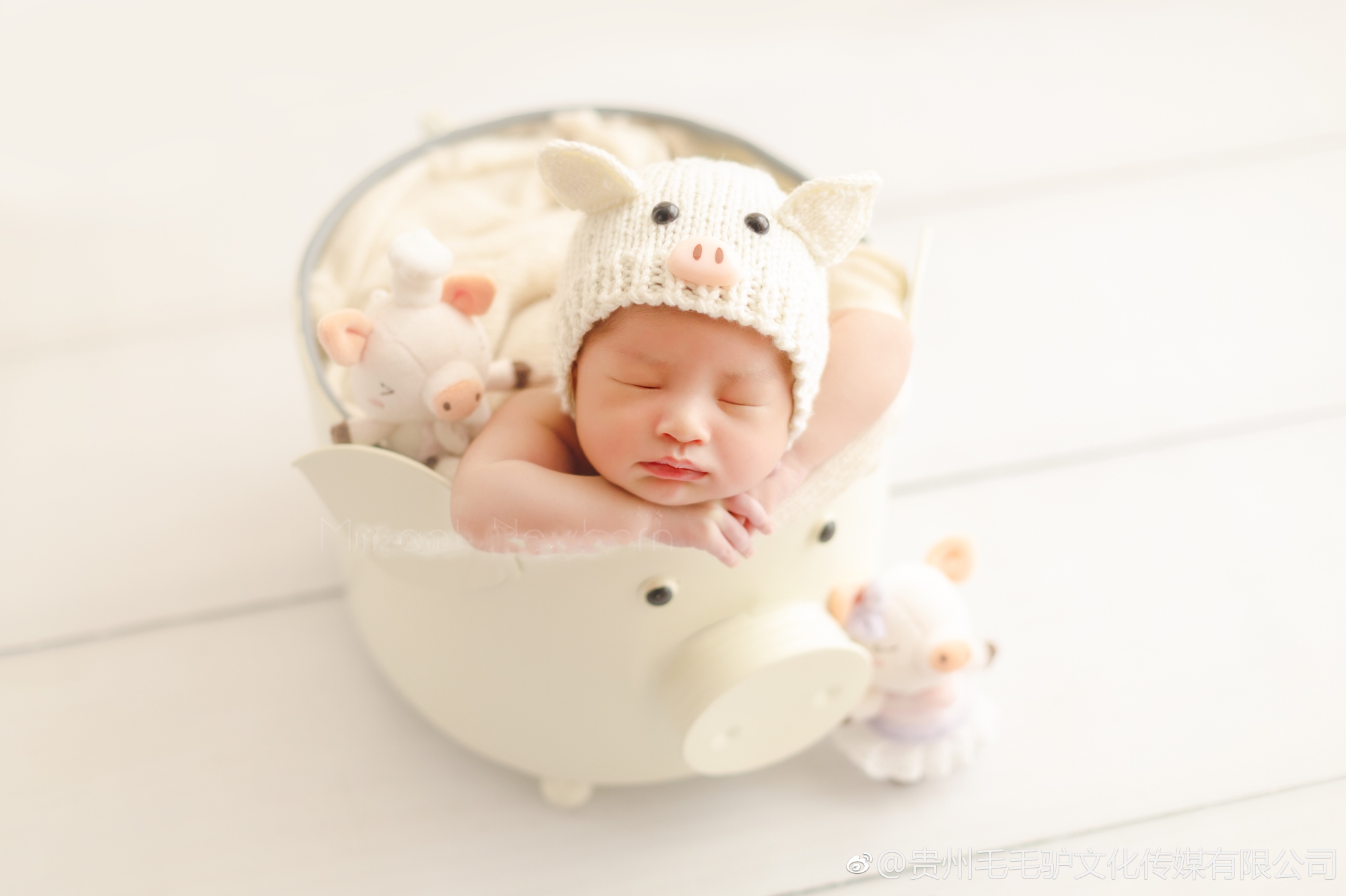 新生儿摄影道具 小猪铁艺桶 影楼婴儿满月百天宝宝拍照小猪筐道具