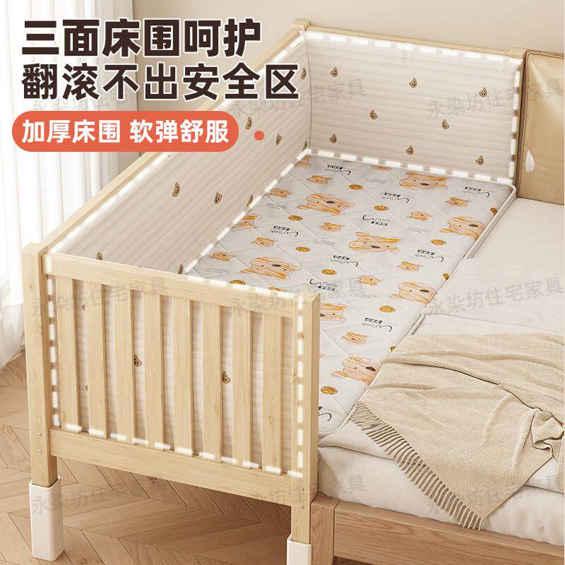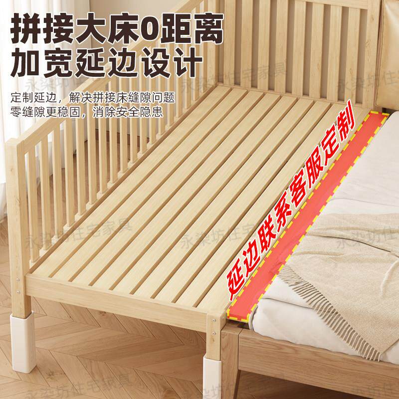 拼接床全实木婴儿床加高护栏男孩女孩儿童床可调节大人加宽延边床