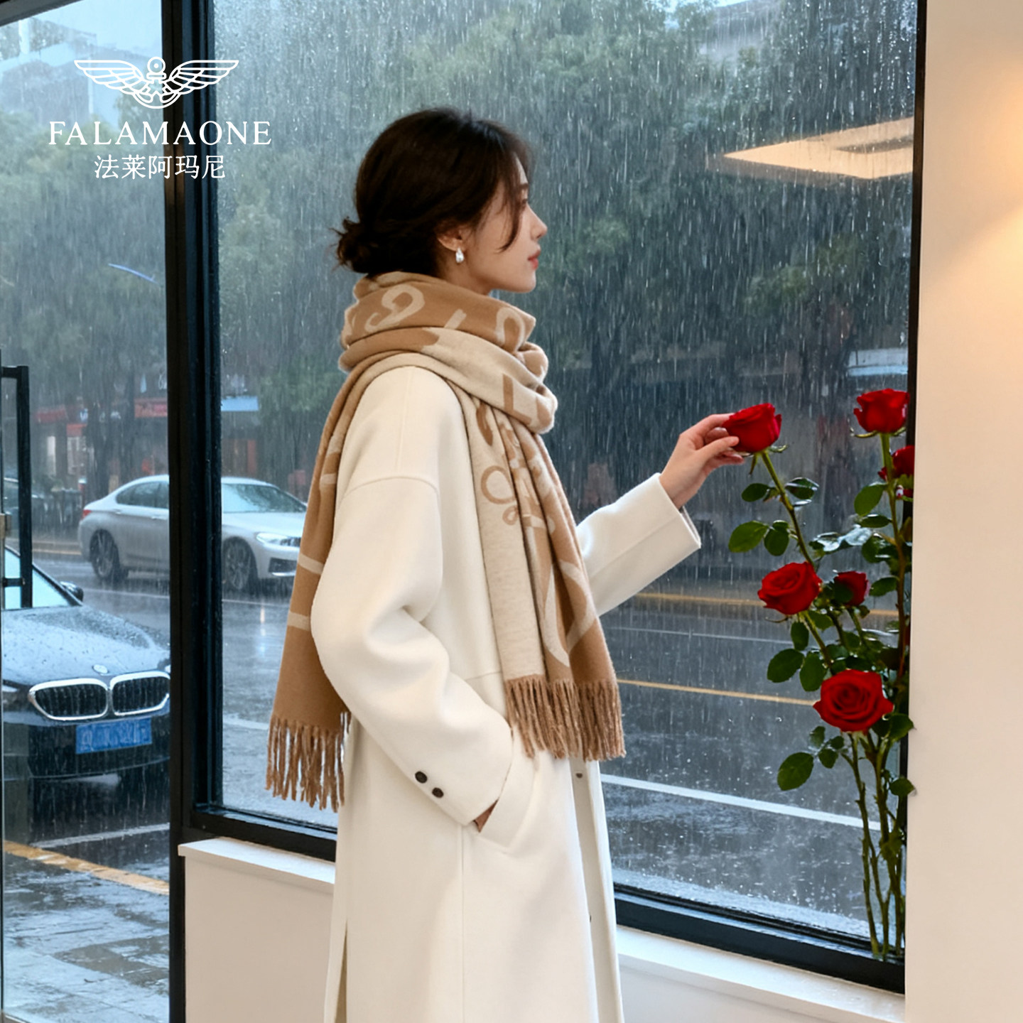 正品法莱阿玛尼围巾女款2026新款冬披肩外搭氛围感围脖生日礼物女